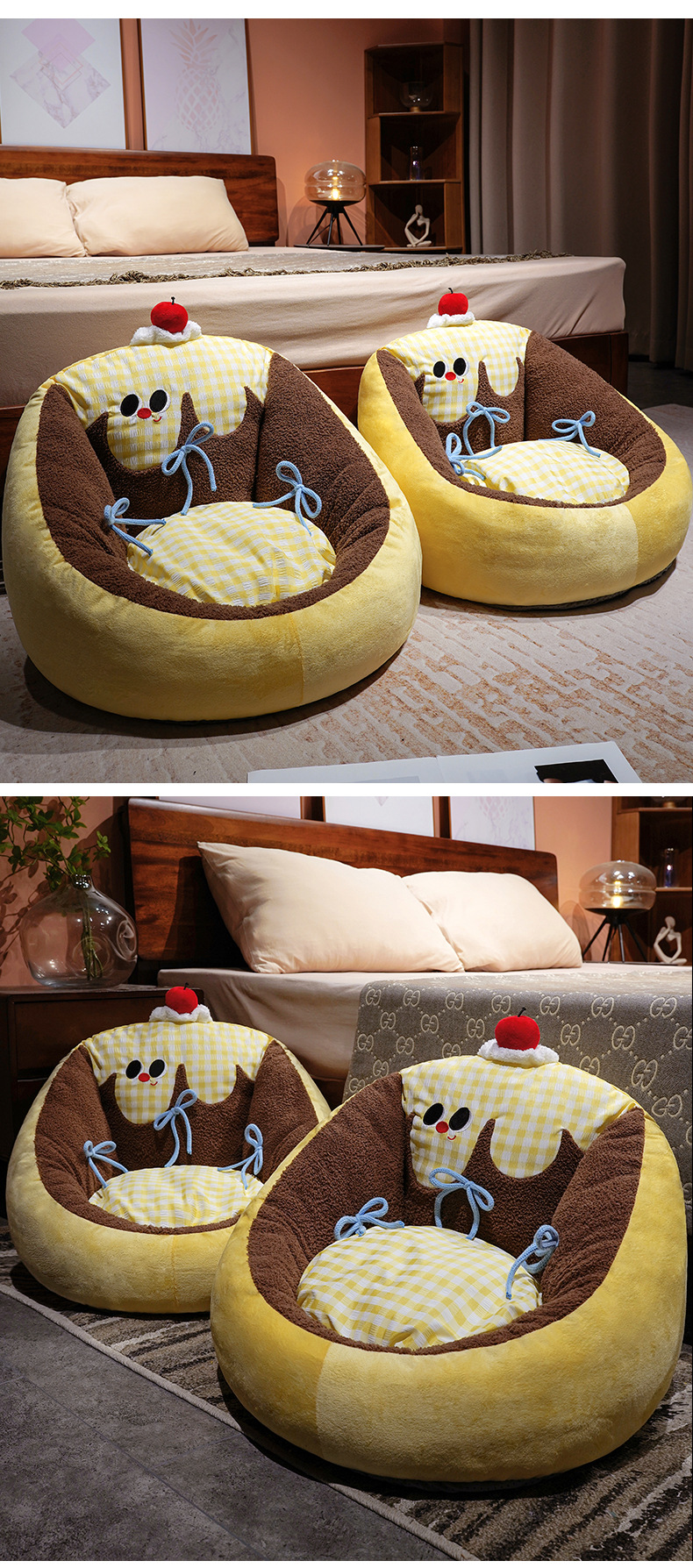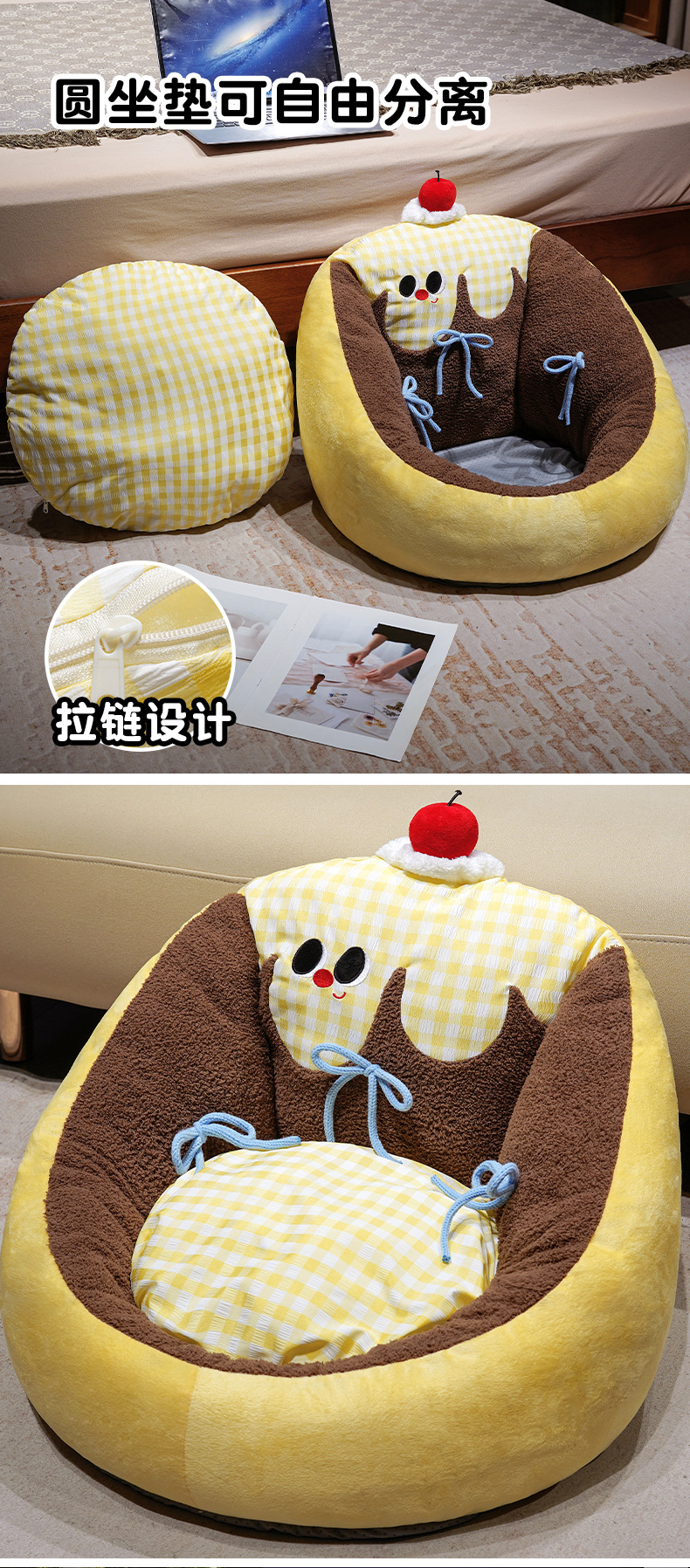 Círculos animados grandes ojos pudín futon cojín dormitorio pequeño sofá en el suelo grueso tatami silla de asiento cojín de piernas