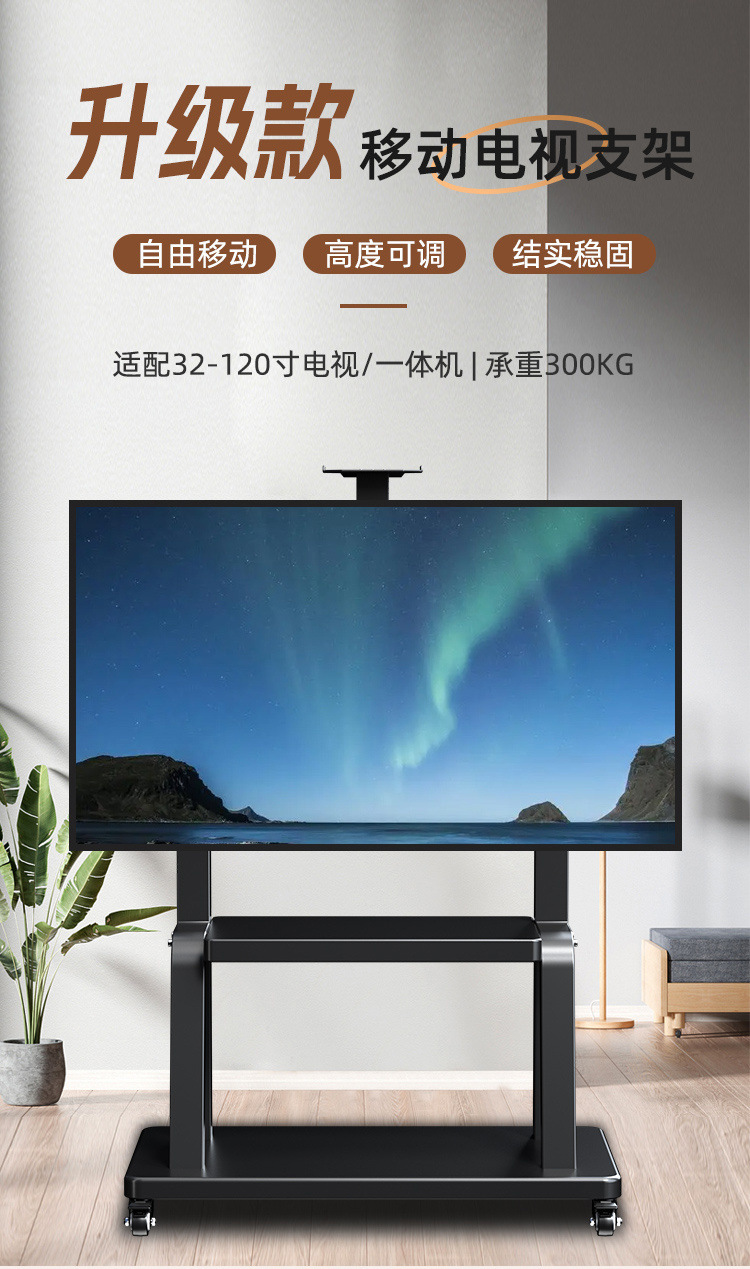 Soporte de televisión universal tipo piso móvil carro todo-en - uno Xiaomi Hisense TCL marco vertical con ruedas