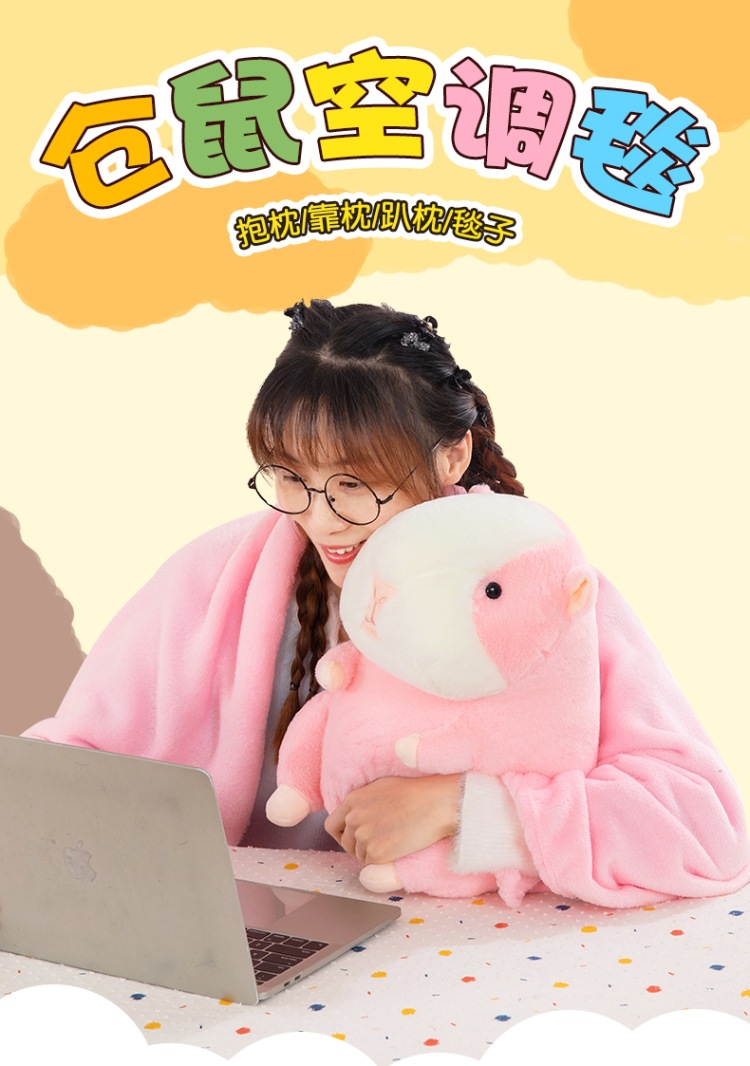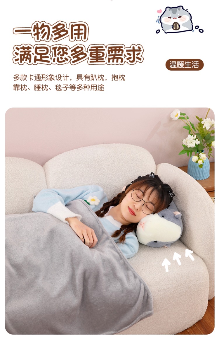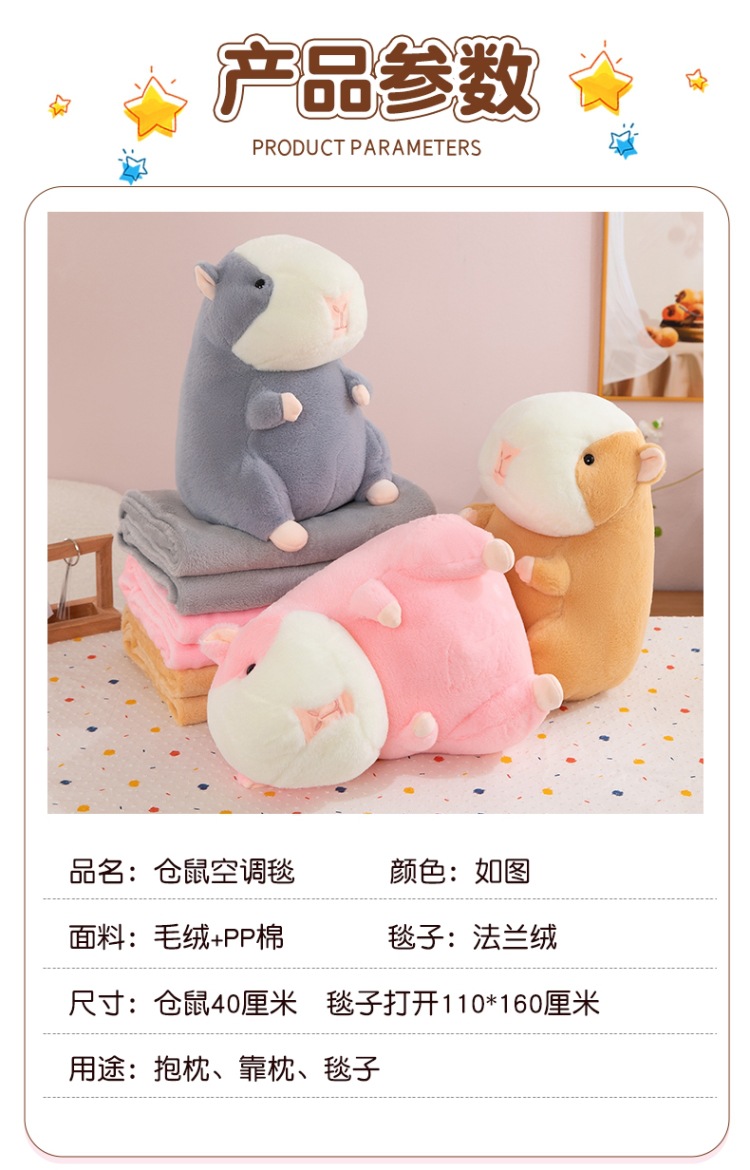 Lindo hamster almohada para la siesta edredón almohada para coche edredón cojín de doble uso edredón almohada grande manta de aire acondicionado de lana de coral