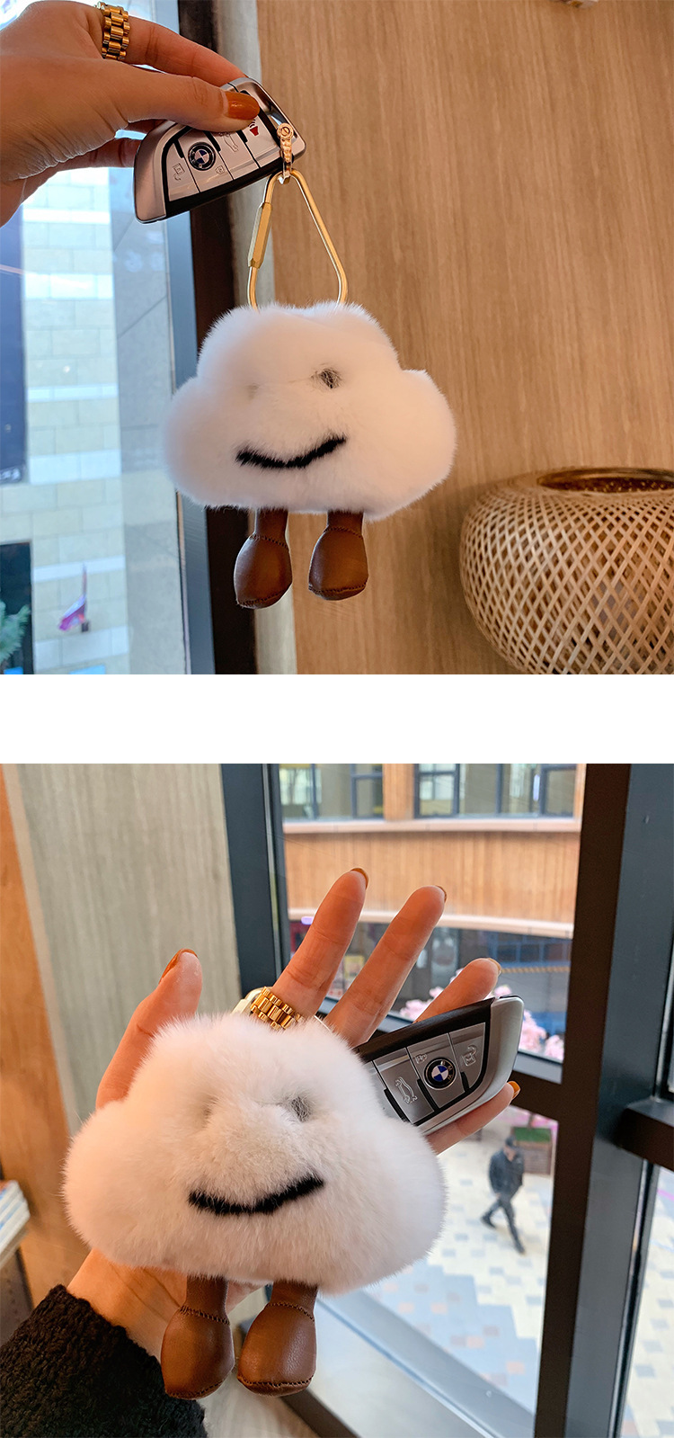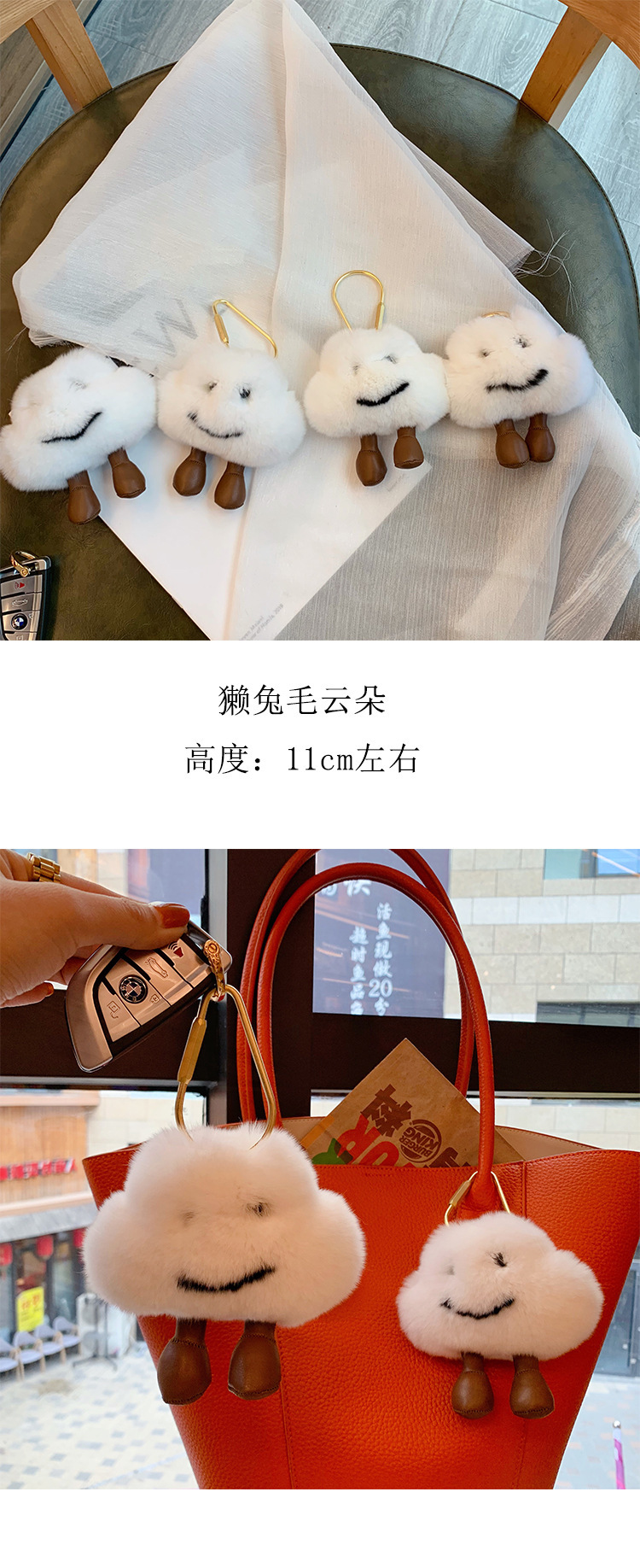 Piel real ~ lindo felpa pequeña nube adornos colgante llavero regalo para novia peluda chica
