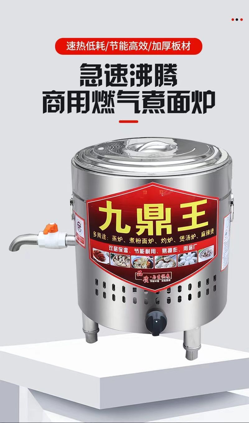 El mercado nocturno coloca la olla de calentamiento de gas licuado comercial aislamiento térmico barril de fideos de guisado, guisado de arroz, guisado de arroz y almidón mezclado guisado integral