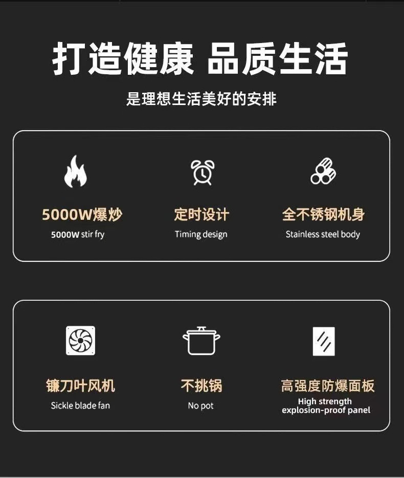 | Especificaciones | Chips importados de Alemania - un juego de 5000 hornos de inducción garantizados durante 10 años, chips importados de Alemania - cuatro juegos de 5000 hornos de inducción garantizados durante 30 años, chips importados de Alemania - nueve juegos de 5000 hornos de inducción garantizados durante 50 años |