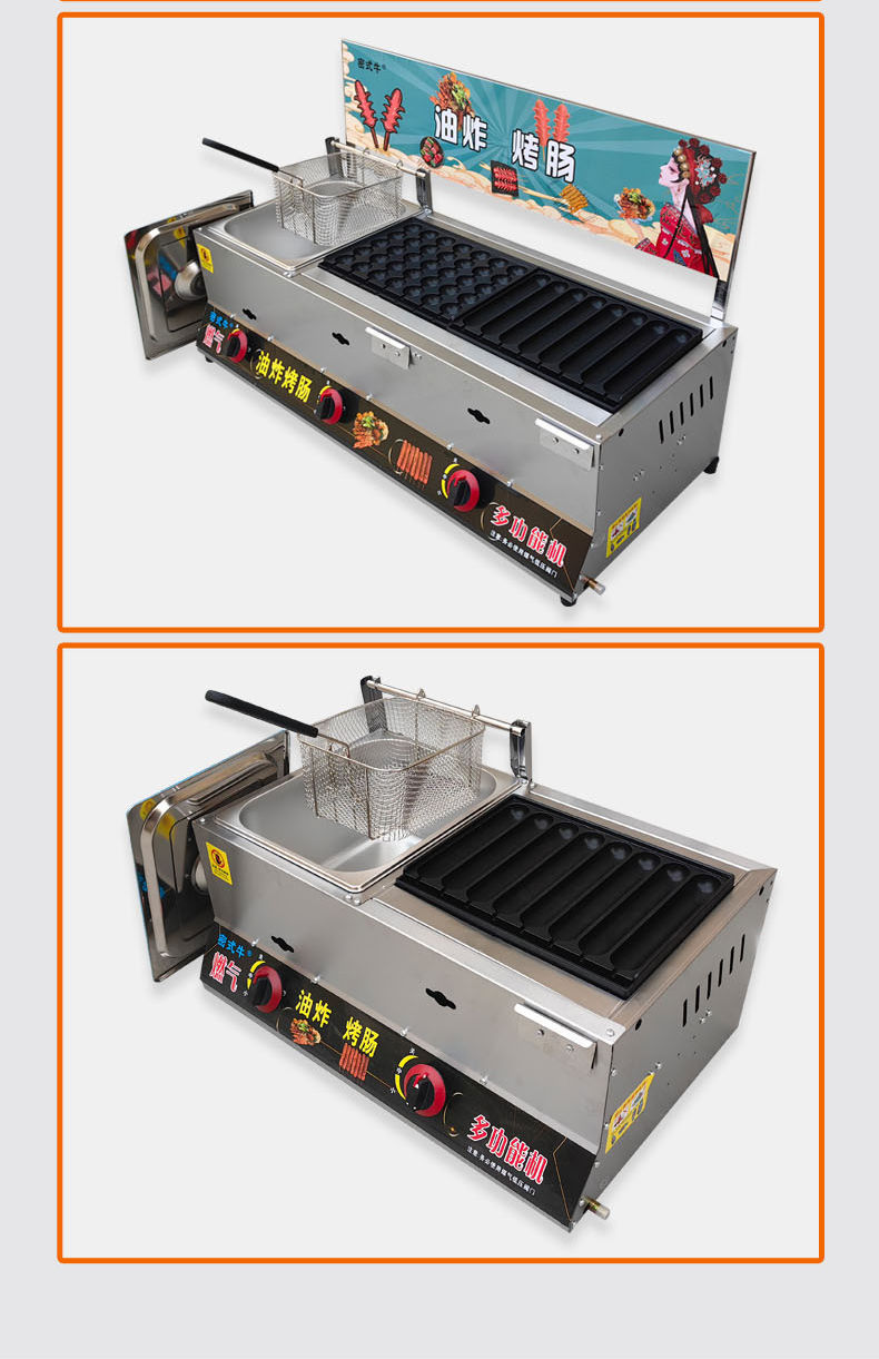 Freidora comercial de gas, barraca de jamón dorado, tostadora de salchichas crujientes, perros calientes, almidón, salchichas, hamburguesas de huevo