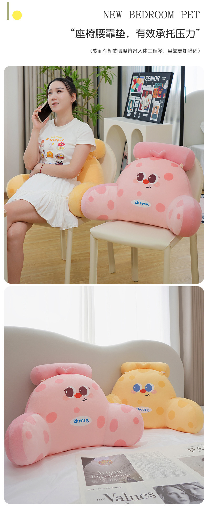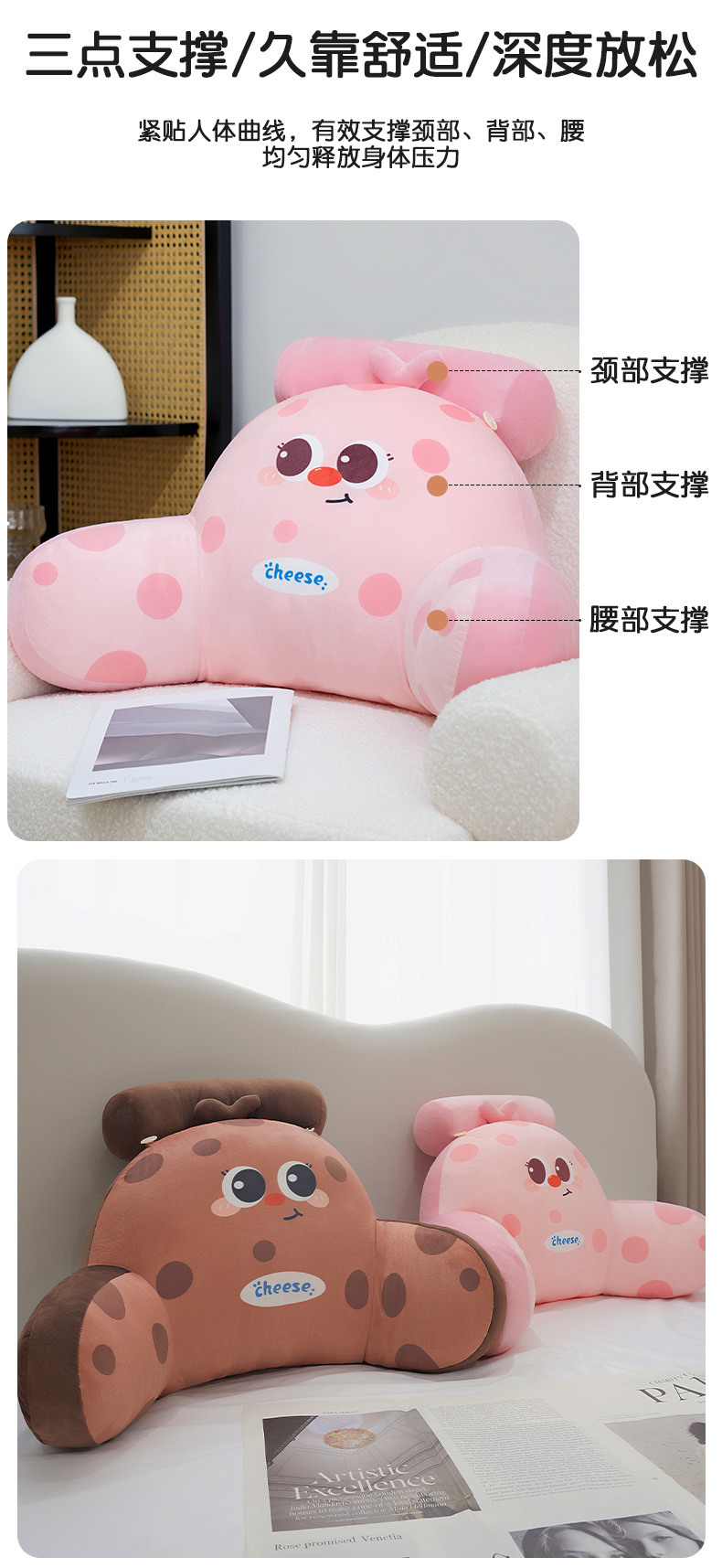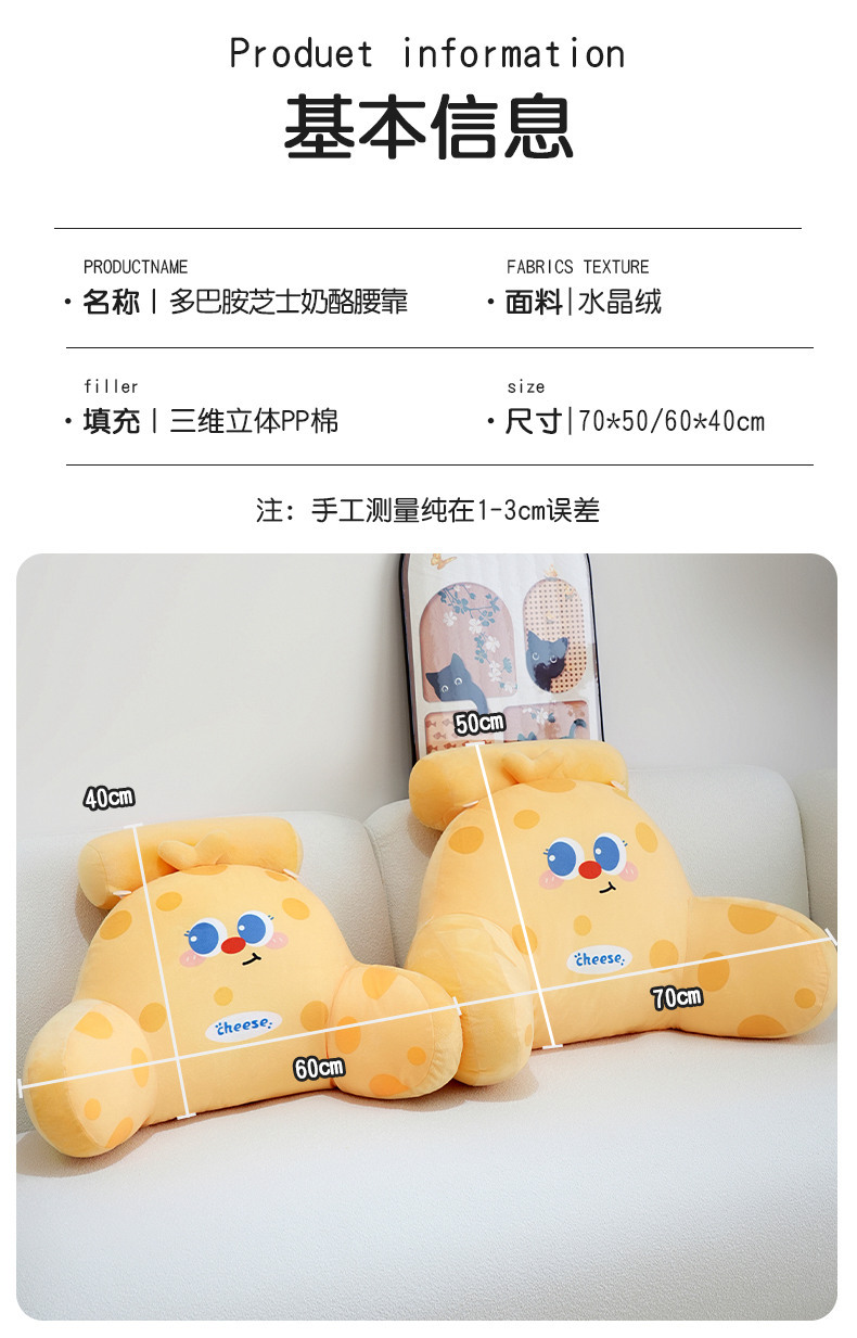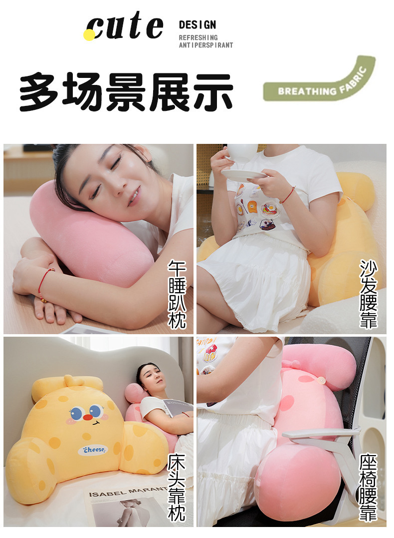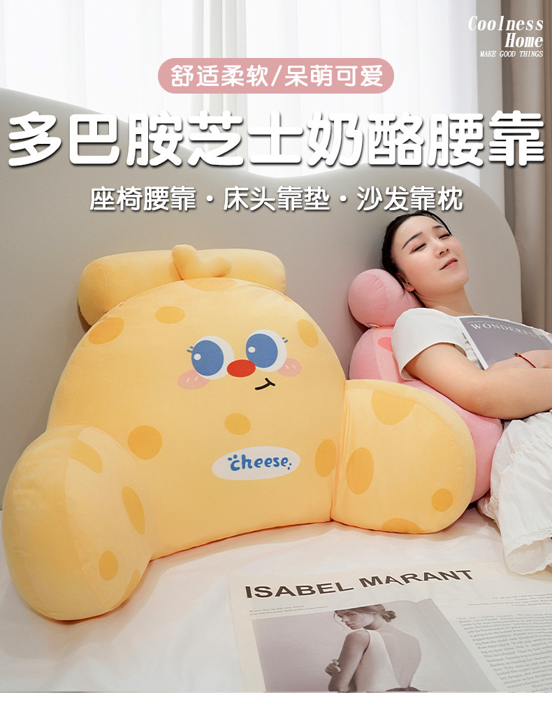 Círculos animados queso cintura de cama de cabecera bolso almohada de respaldo almohada de cama grande sofá almohada dormitorio de estudiantes almohada de lectura