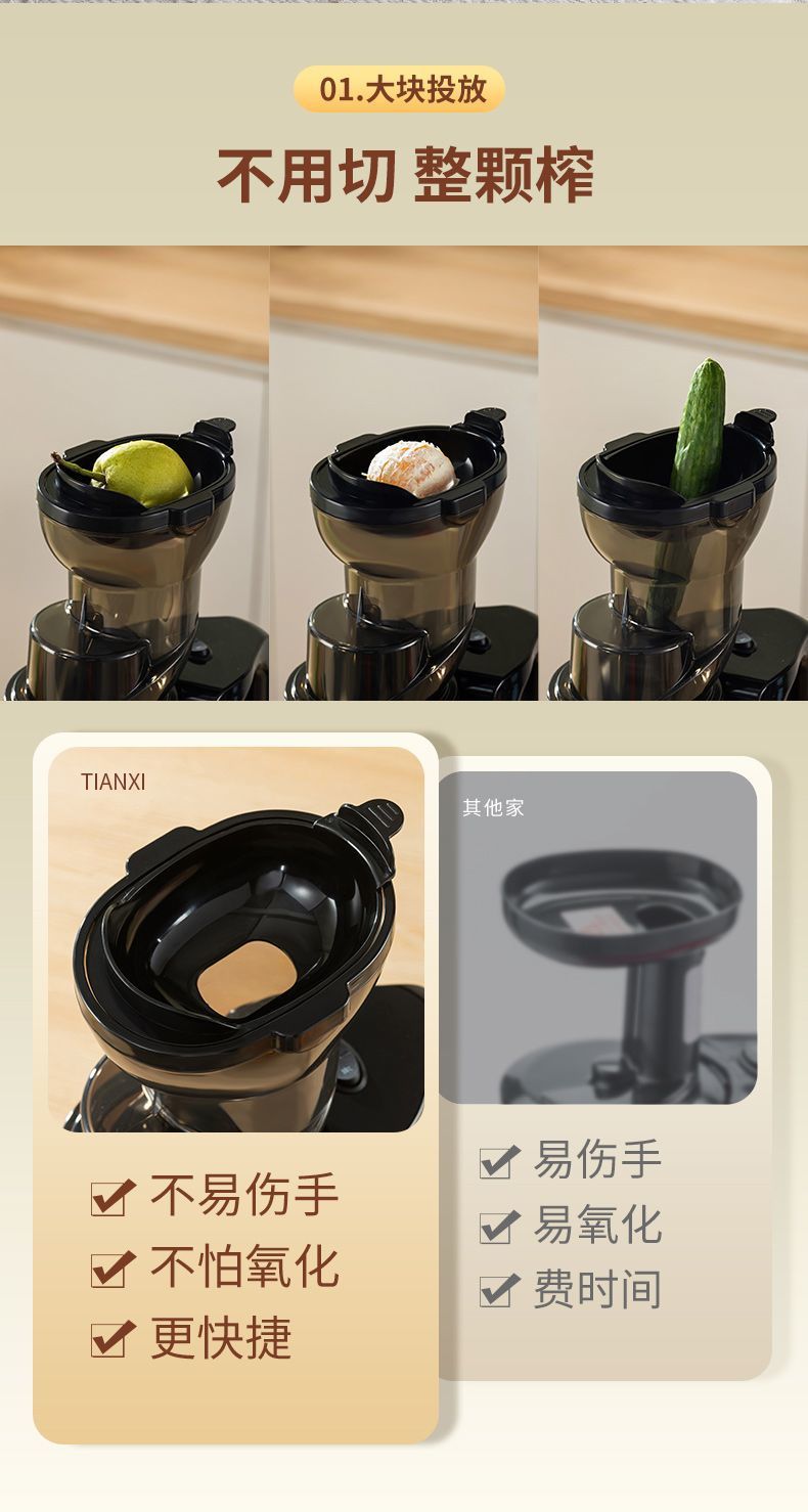 Máquina de jugo Tianxi para separar residuos de jugo doméstico de gran calibre totalmente automático sin cortar y filtrar frutas y verduras fritas