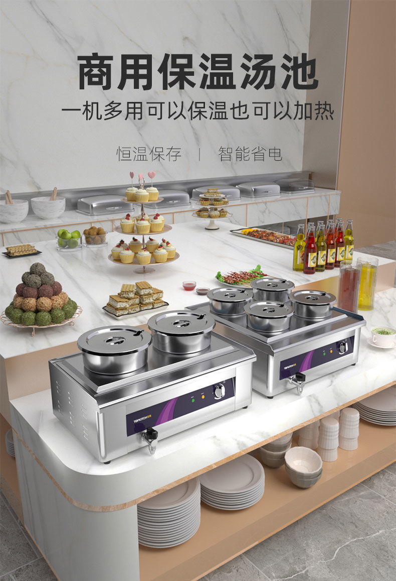 Tuqi estanque de sopa de aislamiento de calor eléctrico comercial perla tortuga circular estufa de aislamiento de calor hotel de comida rápida buffet de té de leche estufa de aislamiento de calor