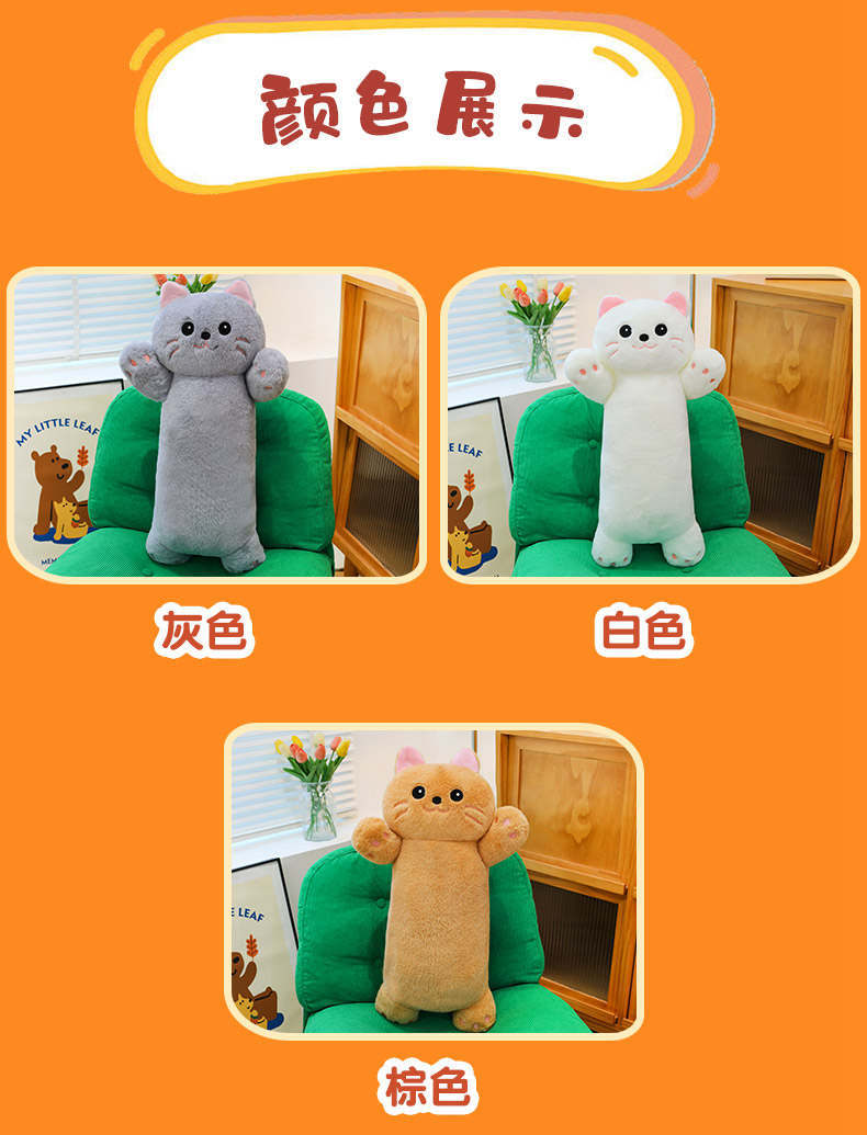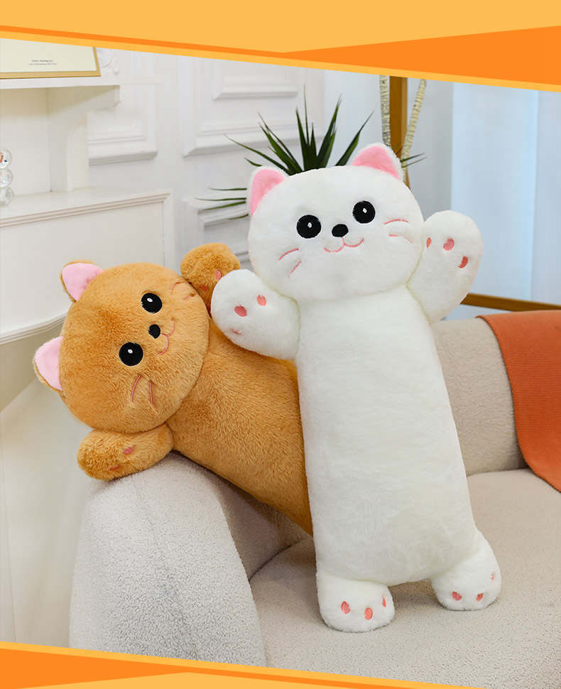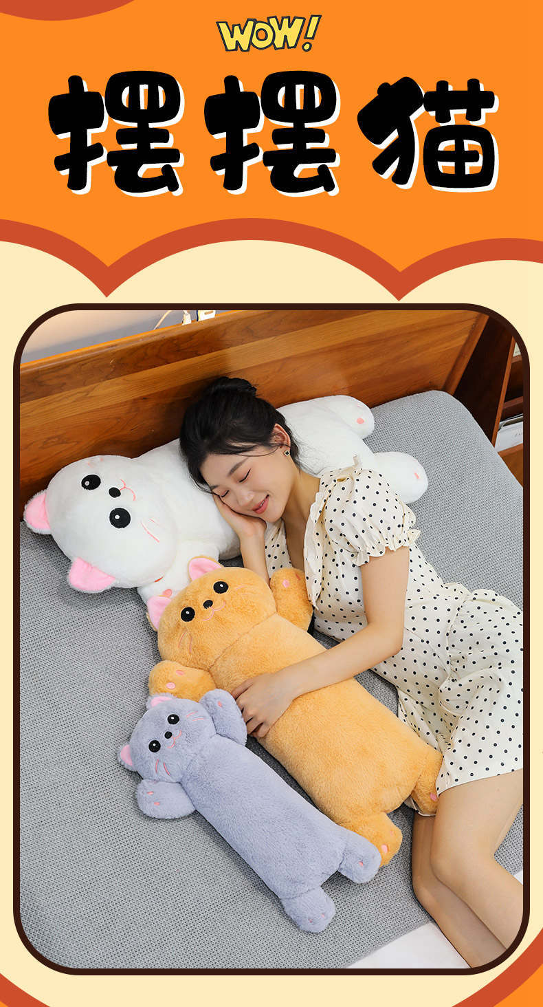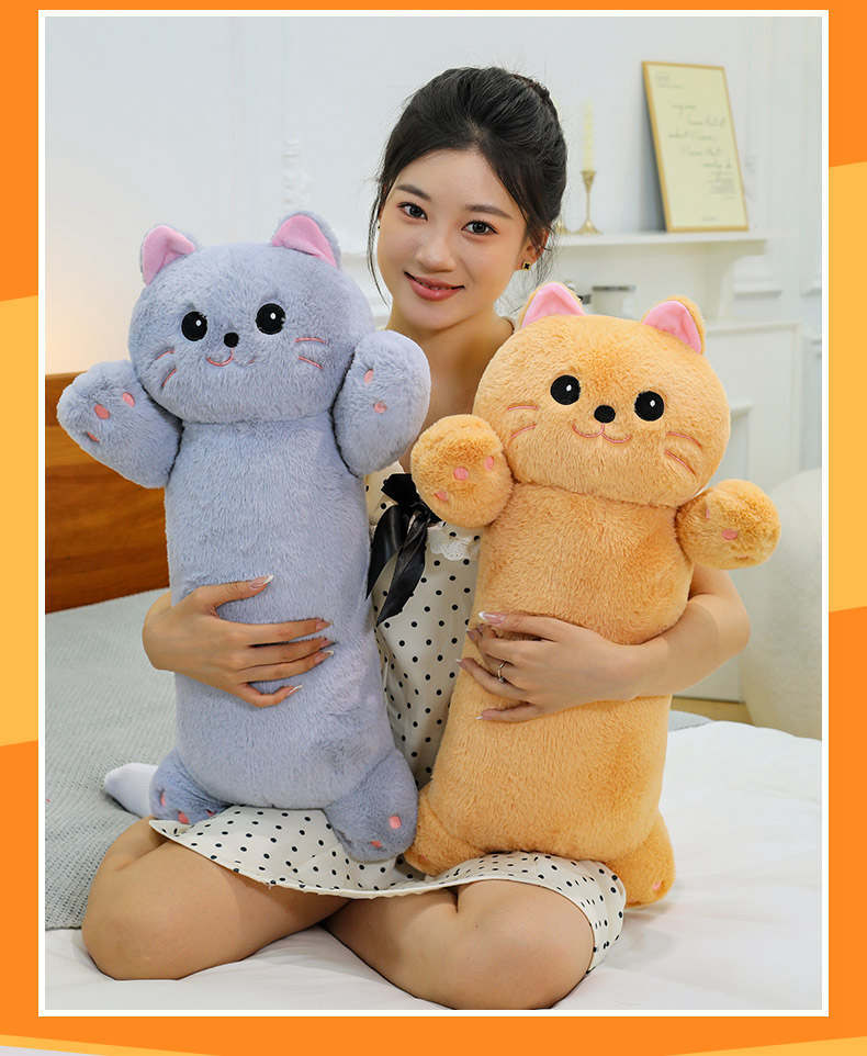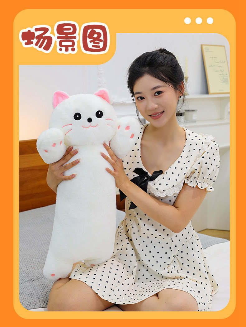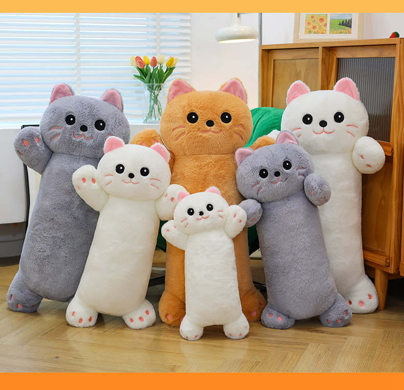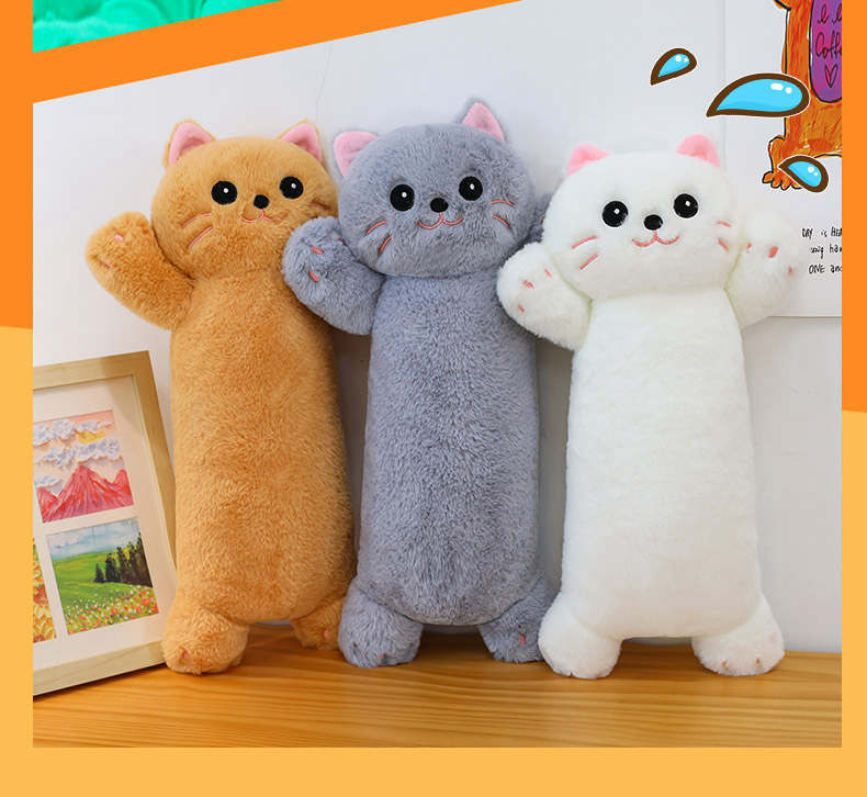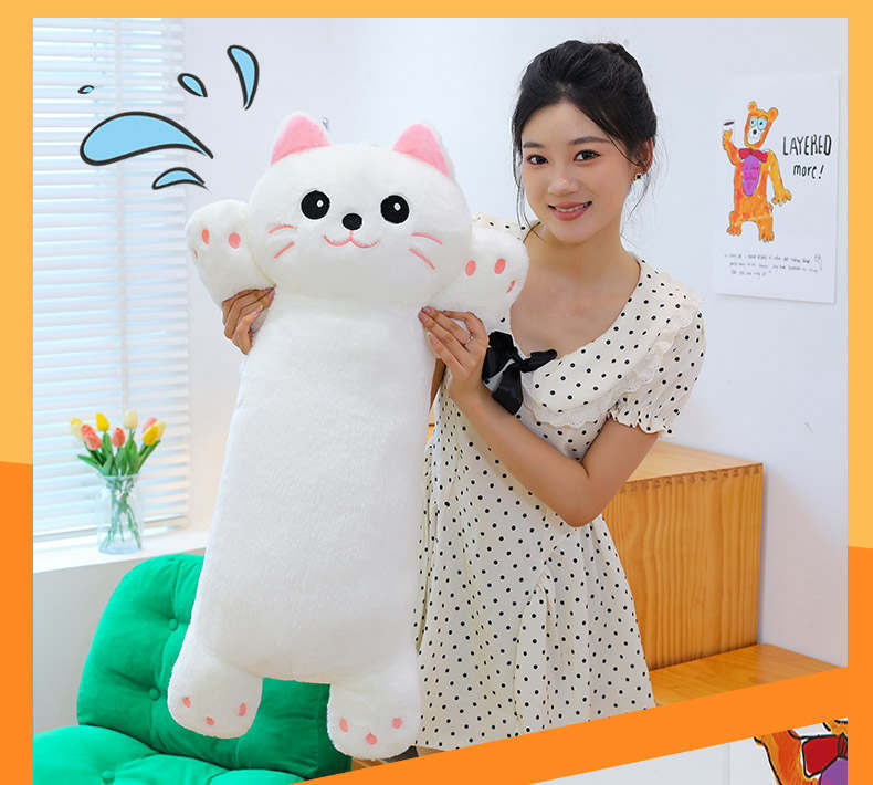 Gato lindo lindo, almohada larga, muñeca de peluche, muñeca de gato, muñeca para niños, muñeca de tela tranquila.