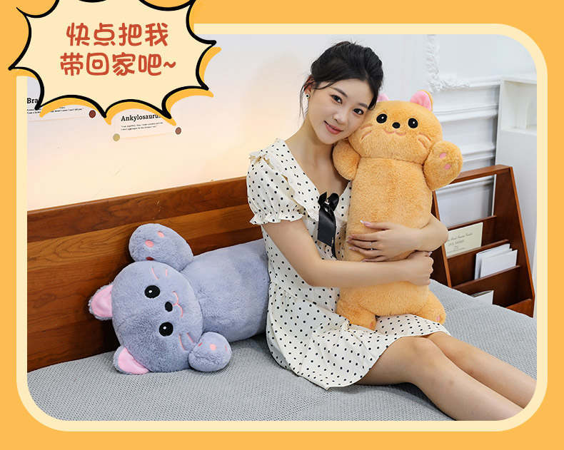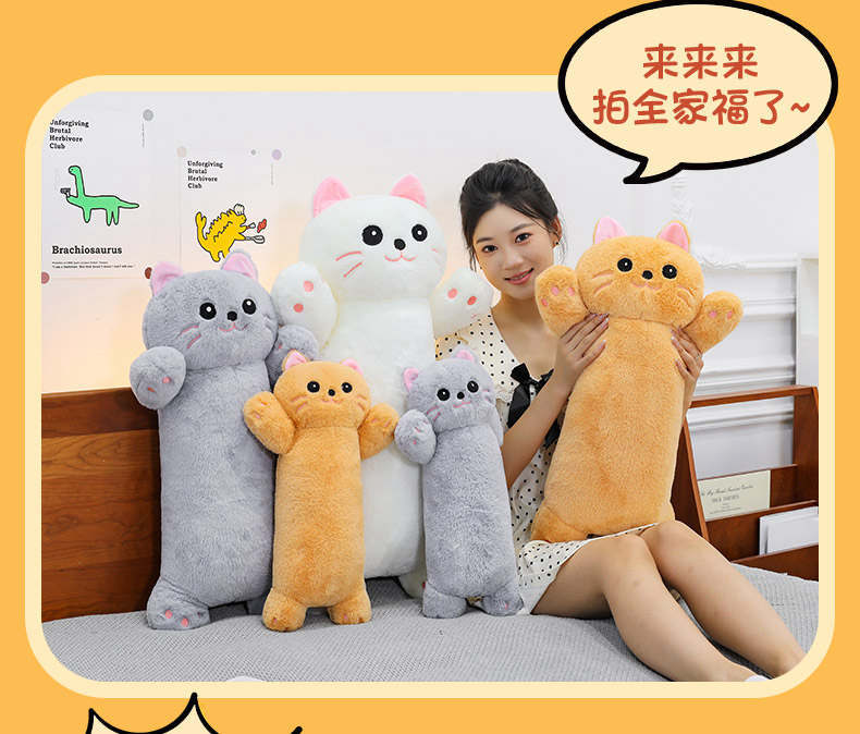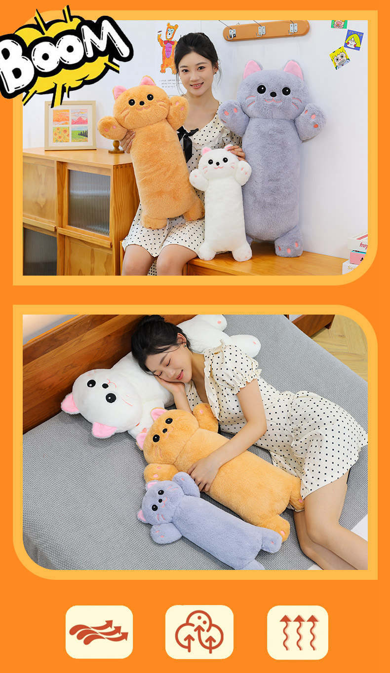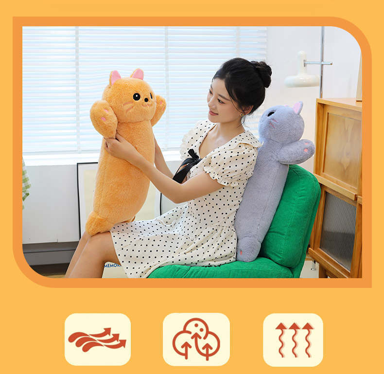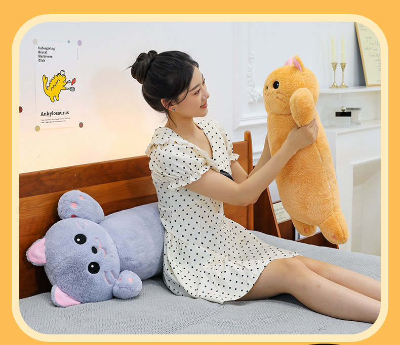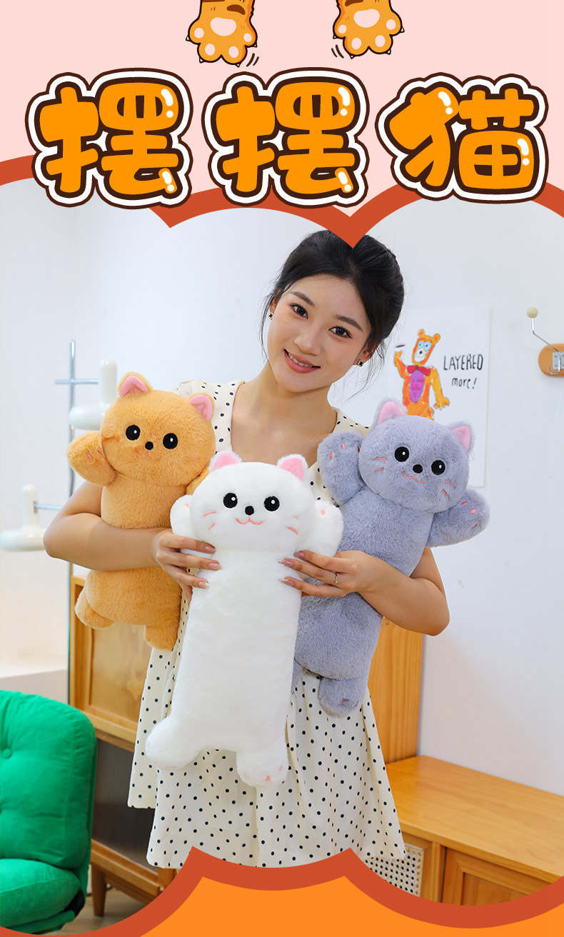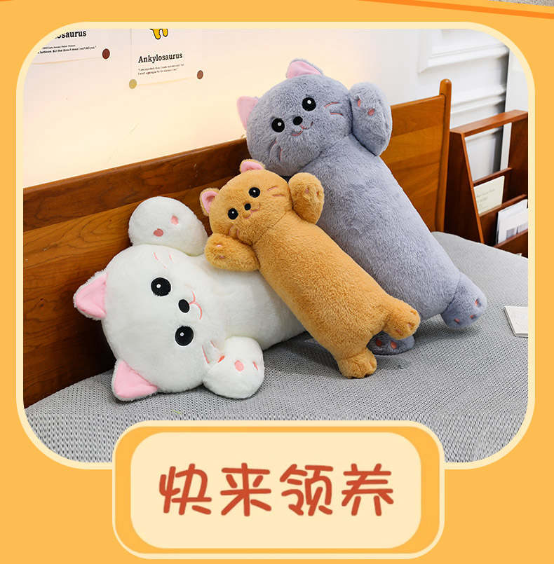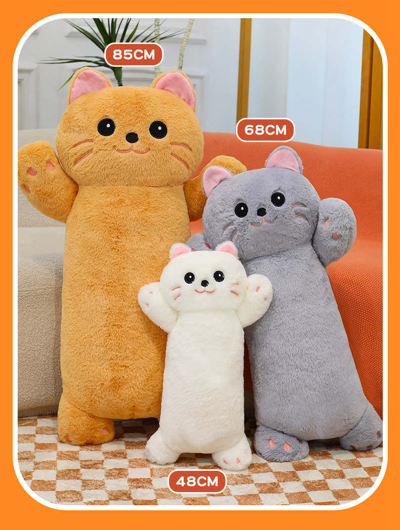 Gato lindo lindo, almohada larga, muñeca de peluche, muñeca de gato, muñeca para niños, muñeca de tela tranquila.