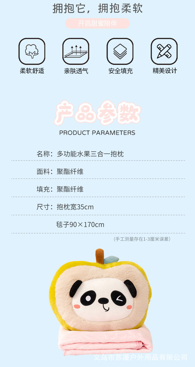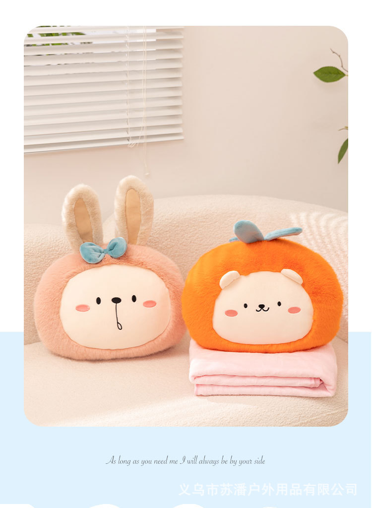 Nuevo transfronterizo multifuncional lindo pequeño frutas frescas 3 en 1 almohada para niñas niños regalo de cumpleaños naranja