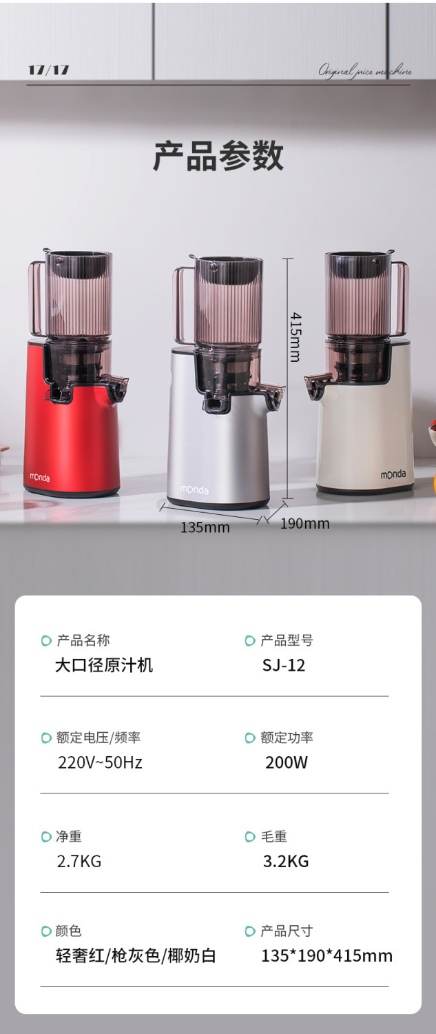 | Especificaciones | SJ - 12 Battle Grey - 115 Big calibre - 200w motor, SJ - 12 Rose red - 115 Big calibre - 200w motor, opcional filtro de helado + 30 yuanes para contactar con el servicio al cliente nota color |