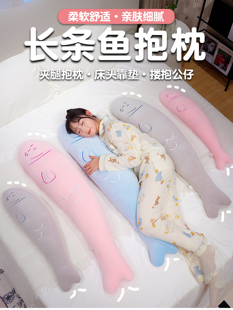 Muñeca de pescado largo almohada para dormir en la cama muñeca de tela de pierna muñeca de pescado salado muñeca para dormir lateral muñeca de peluche para niños