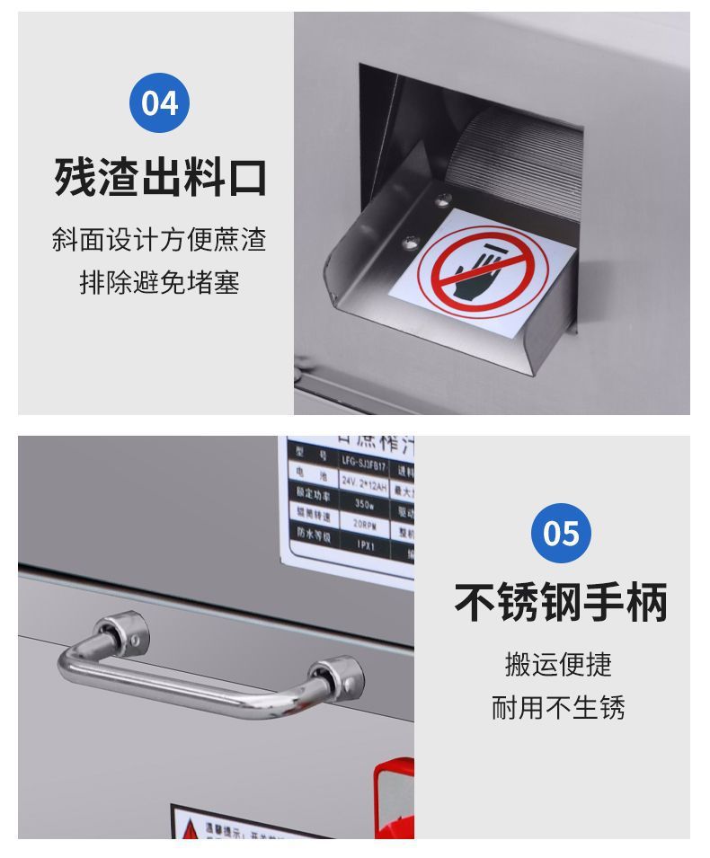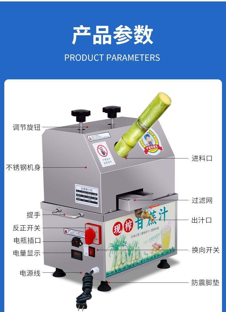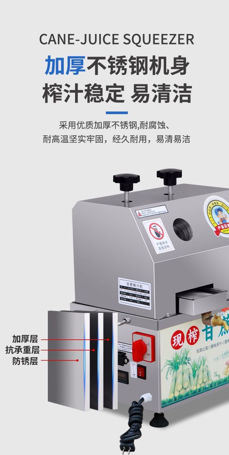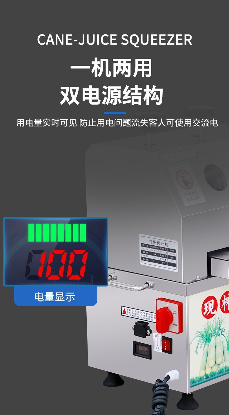 Máquina de jugo de caña de azúcar comercial, caña de azúcar de bambú, caña de azúcar eléctrica comercial, caña de azúcar de escritorio con batería