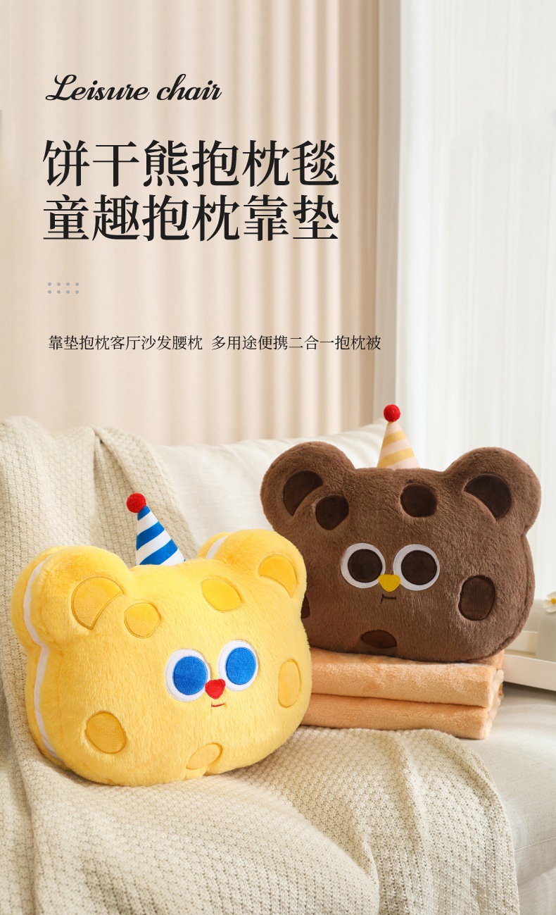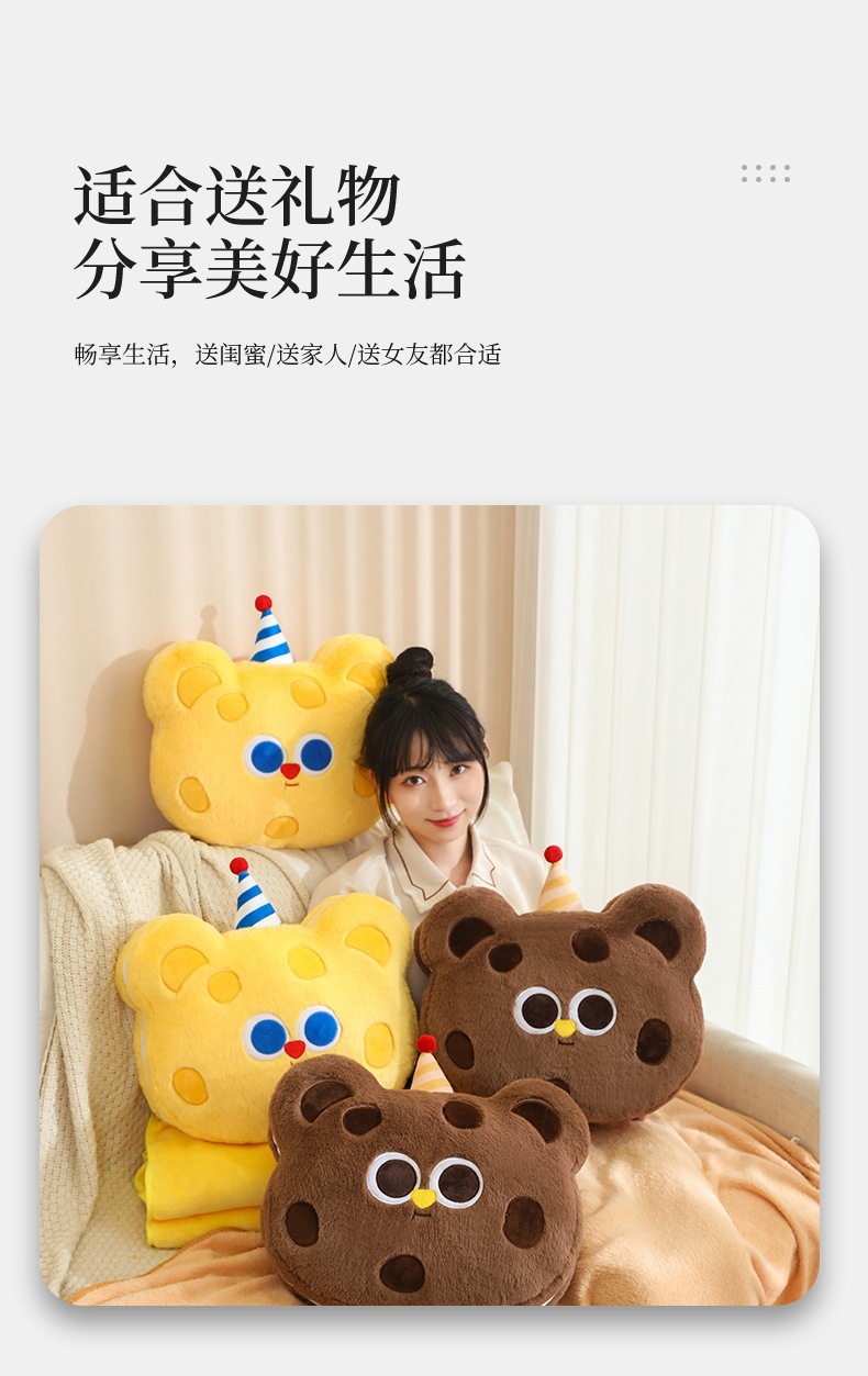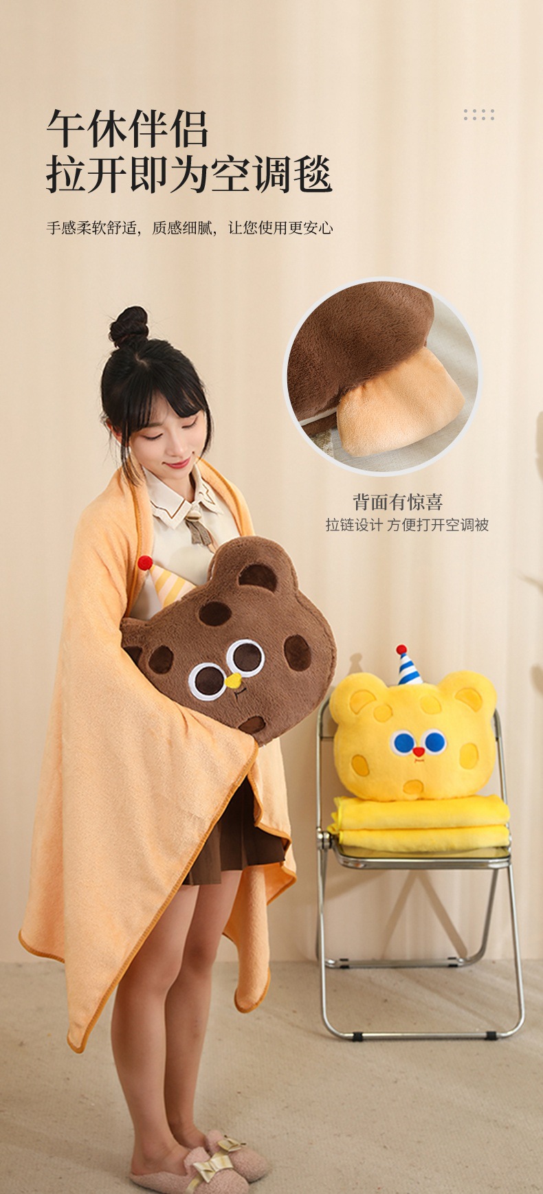 Cookie Bear 2 - in - 1 almohada manta oficina estudiante siesta coche transportar colcha de aire acondicionado desmontable y plegable