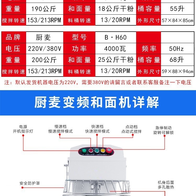 Máquina de harina de harina silenciosa de doble acción de doble velocidad mezcladora de harina de harina 15 / 25 / 10 kg máquina de harina de harina
