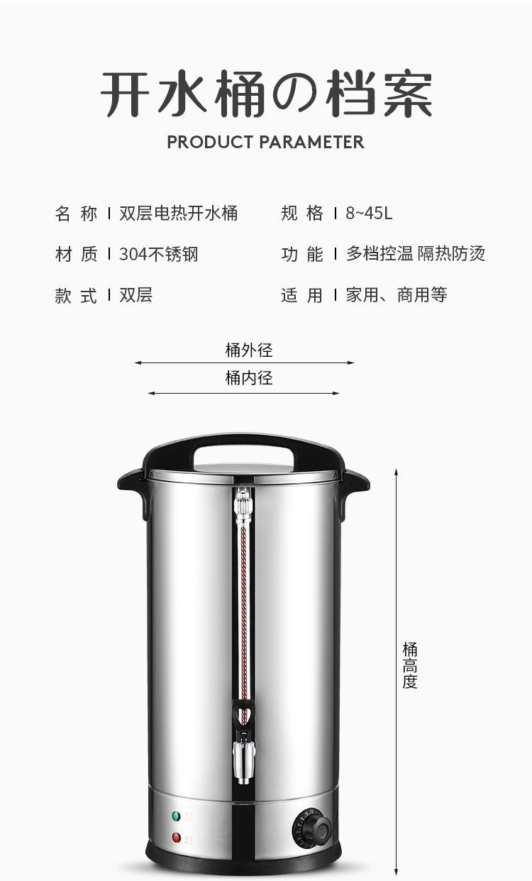 | Especificaciones | 8l barril de agua abierto de calefacción eléctrica de doble capa sus304, 10,5l barril abierto de calefacción eléctrica de doble capa sus304, 16l barril abierto de calefacción eléctrica de doble capa sus304, 20L barril abierto de calefacción eléctrica de doble capa sus304, 25l barril abierto de calefacción eléctrica de doble capa sus304, 30l barril abierto de calefacción eléctrica de doble capa sus304, 35l barril Abierto de calefacción eléctrica de doble capa sus304, 45l barril abierto de calefacción eléctrica de doble capa sus304 |