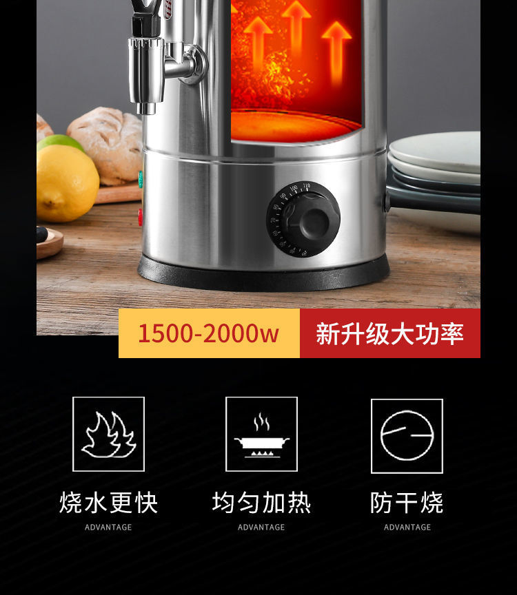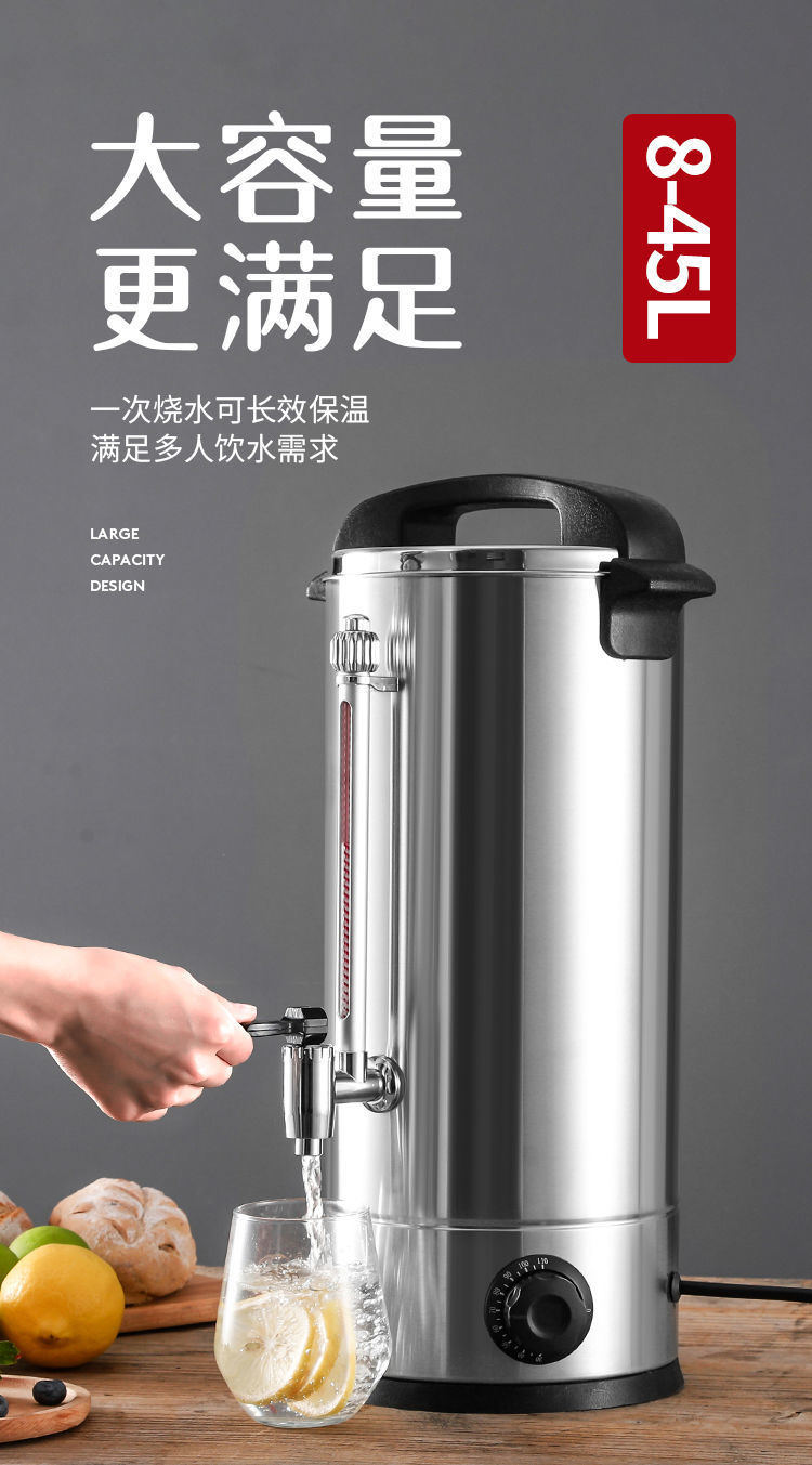 acero inoxidable calentamiento eléctrico cubo de hierva de agua totalmente automático comercial de alta capacidad de doble capa de barril de aislamiento de calor cubo de hierva de agua calder