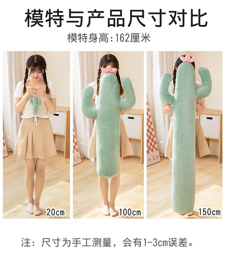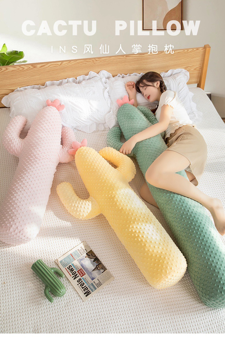 Almohada de cactus de viento ins, terciopelo de guisantes largos cilíndricos, color sólido, cama grande extraíble y lavable, almohada para dormir con piernas