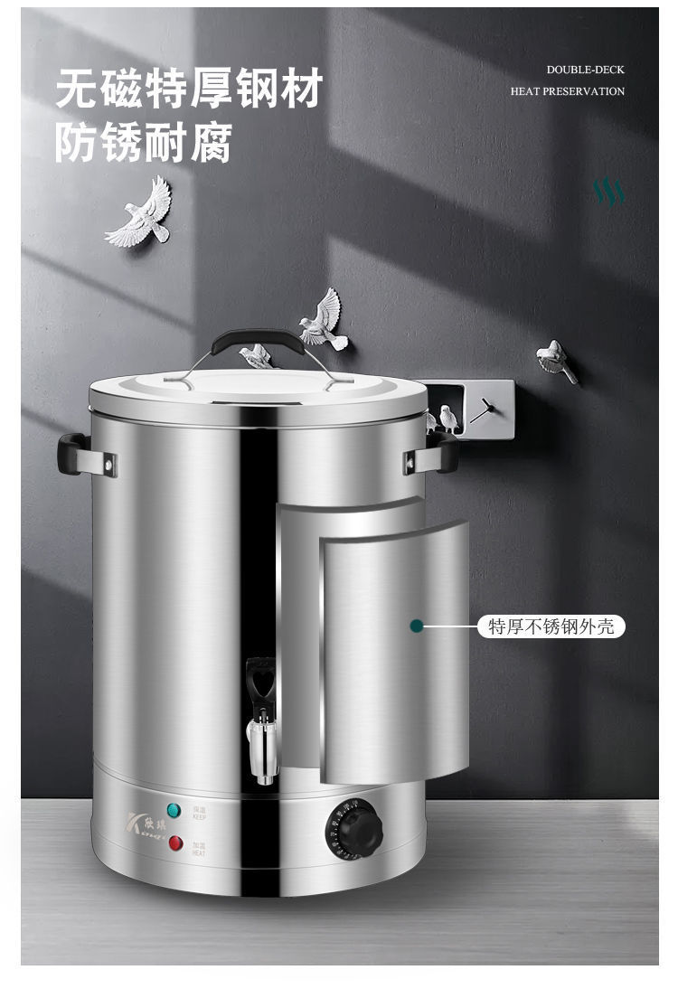 Acero inoxidable calentamiento eléctrico hervir barril de agua, barril de hervir agua eléctrica comercial, calentador de agua eléctrico anticaldado de doble capa, barril de aislamiento térmico de gran capacidad para restaurantes