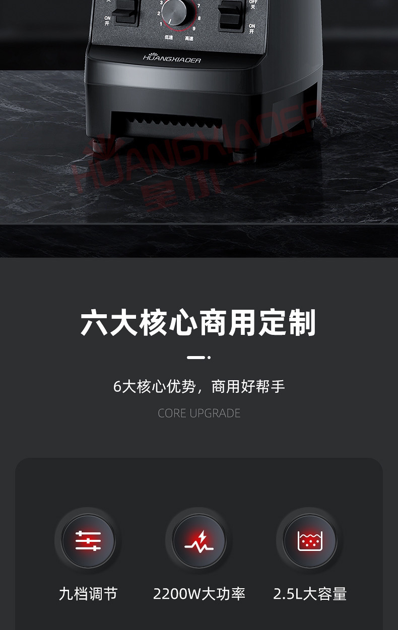 | Especificaciones | Modelo estándar doméstico de 2 litros [9 marchas de velocidad] - (motor de la serie 95), modelo insignia comercial de 2,5 litros [hielo roto fuerte] - (motor de la serie 95), modelo insignia comercial de 2,5 litros + [cuchillo original gratis] - (motor de la serie 95), versión insignia de 3 tazas de 2,5 litros [copa de hielo roto + Copa de leche de soja + Copa de molienda] - (motor de la serie 95) |