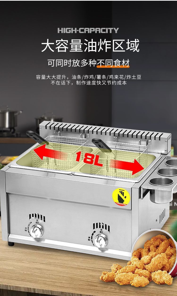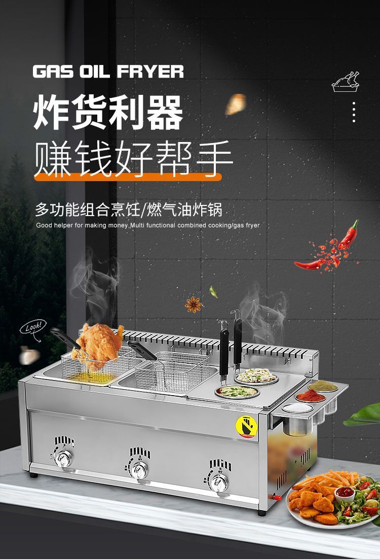 freidora para fritar papas fritas fritas de pollo fritas de sauce de pollo cerrado de gas Kandong cocción de gas comercial freidora especial