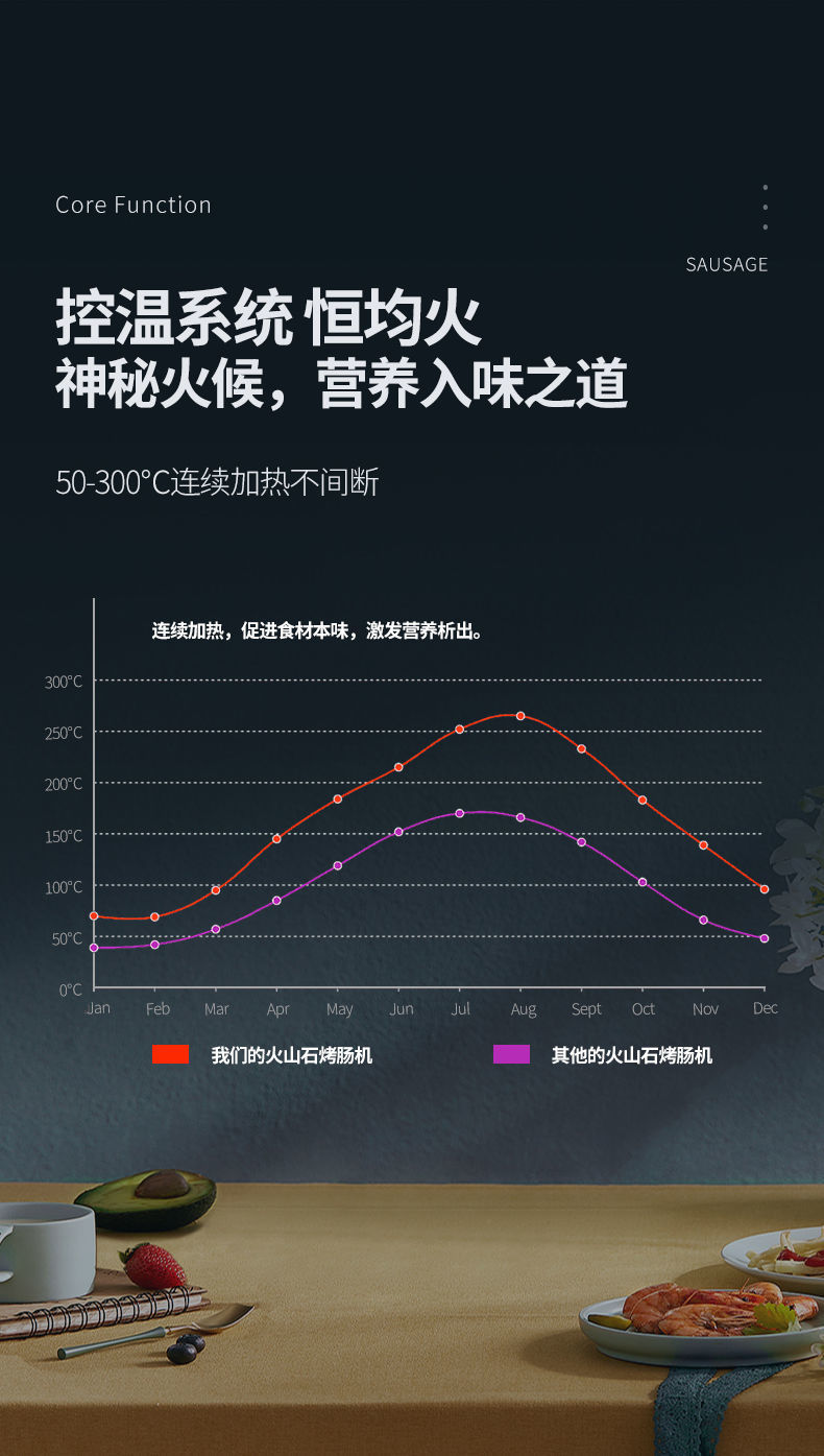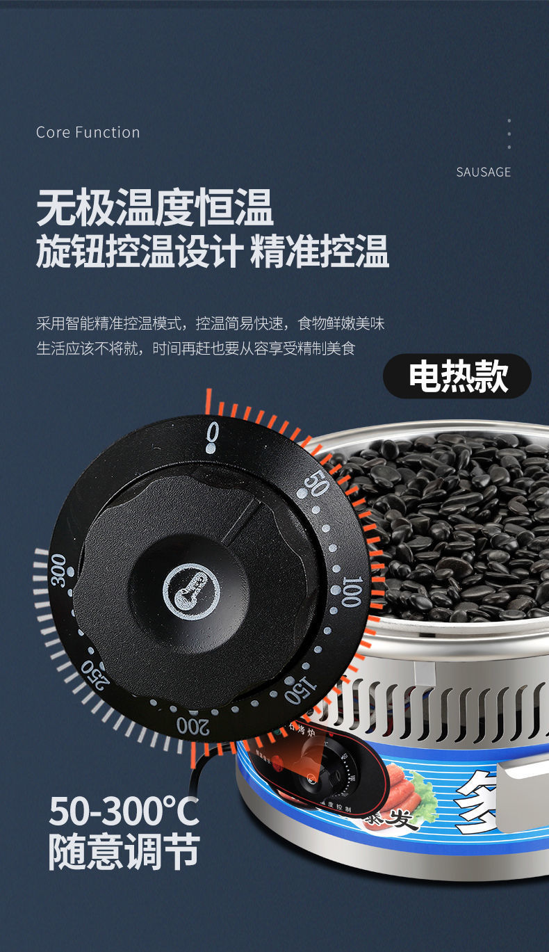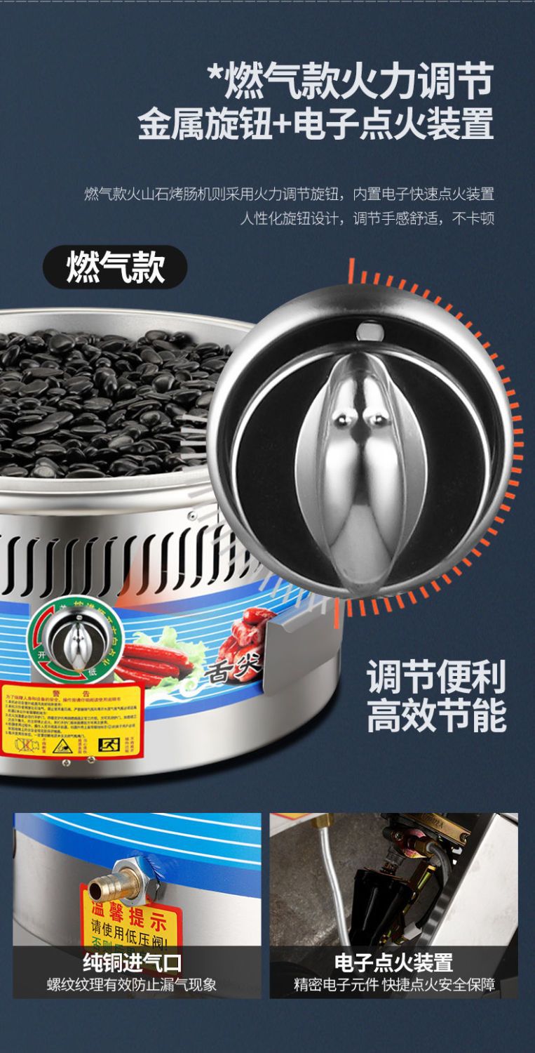 Calentamiento eléctrico roca volcánica máquina de salchichas de gas comercial pequeña roca máquina de salchichas de perros calientes gran mercado nocturno de gas
