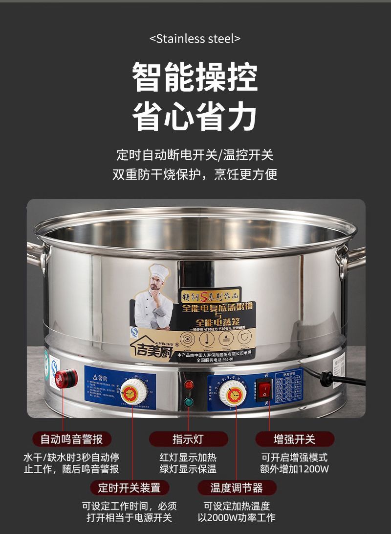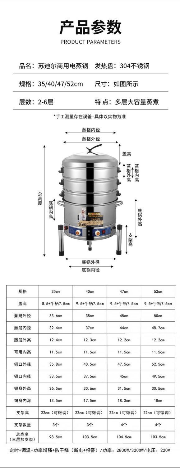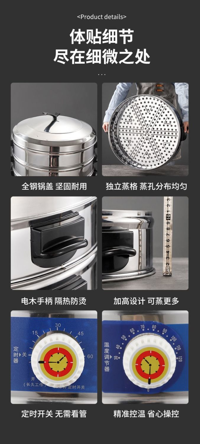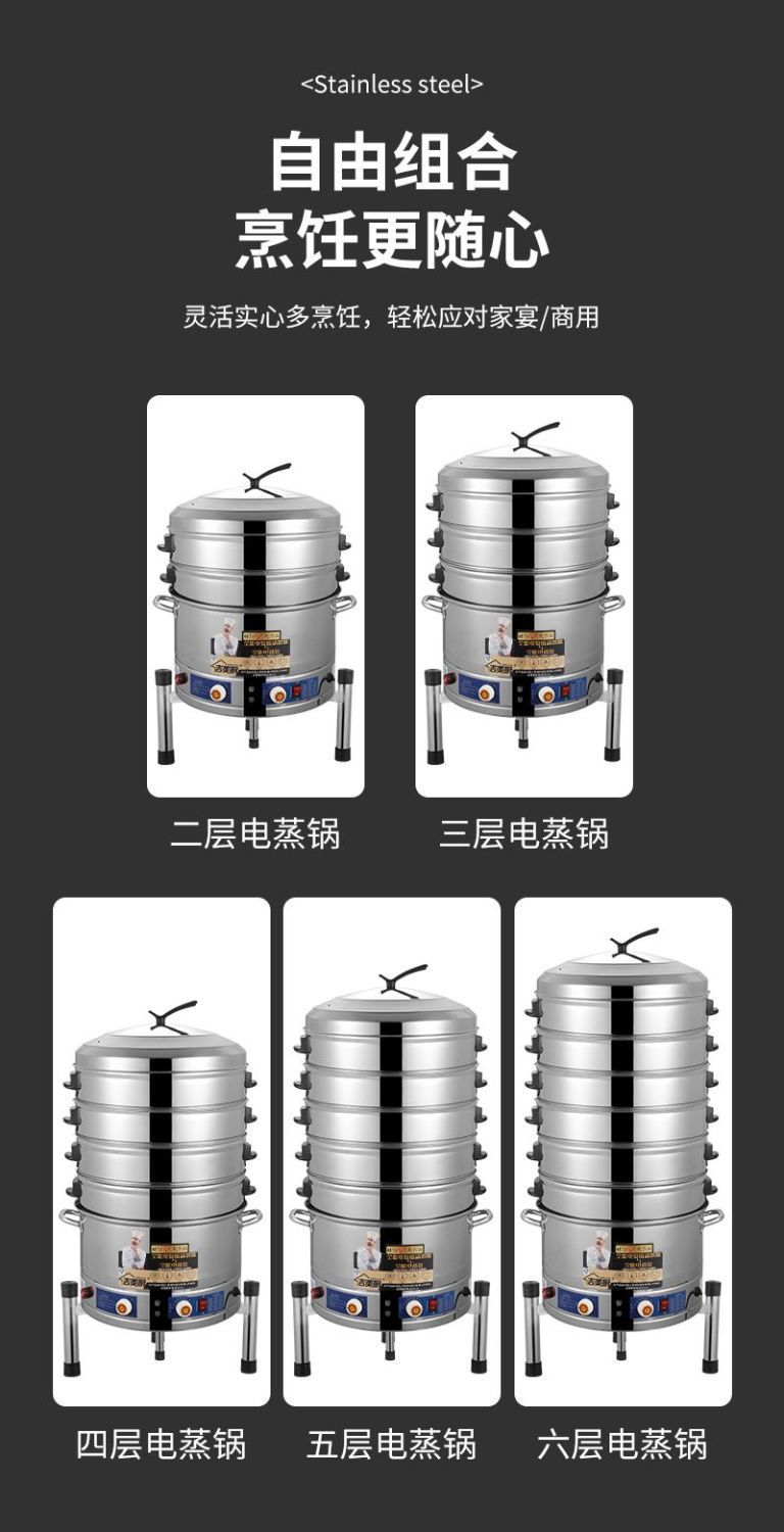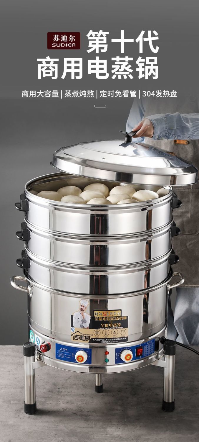 vapor eléctrico multifuncional de acero inoxidable 304 doméstico de tres capas vapor eléctrico automático de gran capacidad comercial pan al vapor