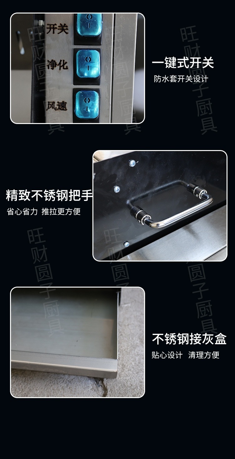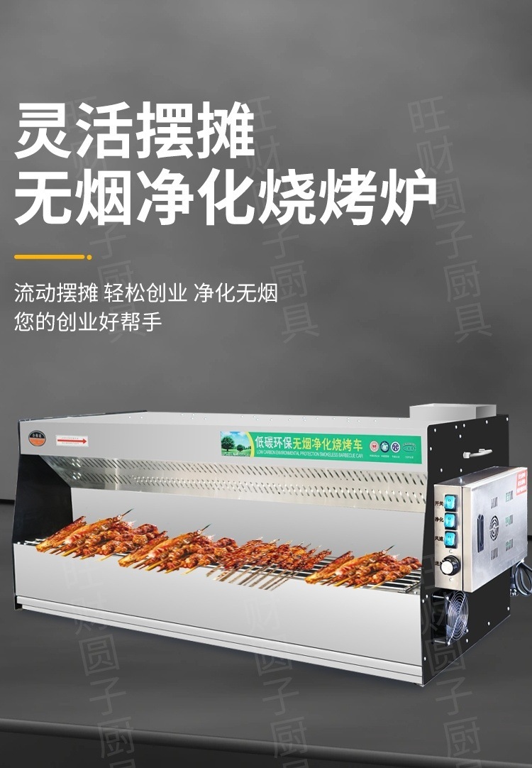 Triciclo sin humo parrilla comercial móvil puesto de limpieza de acero inoxidable revestido de acero carbón parrilla de limpieza de máquina integral