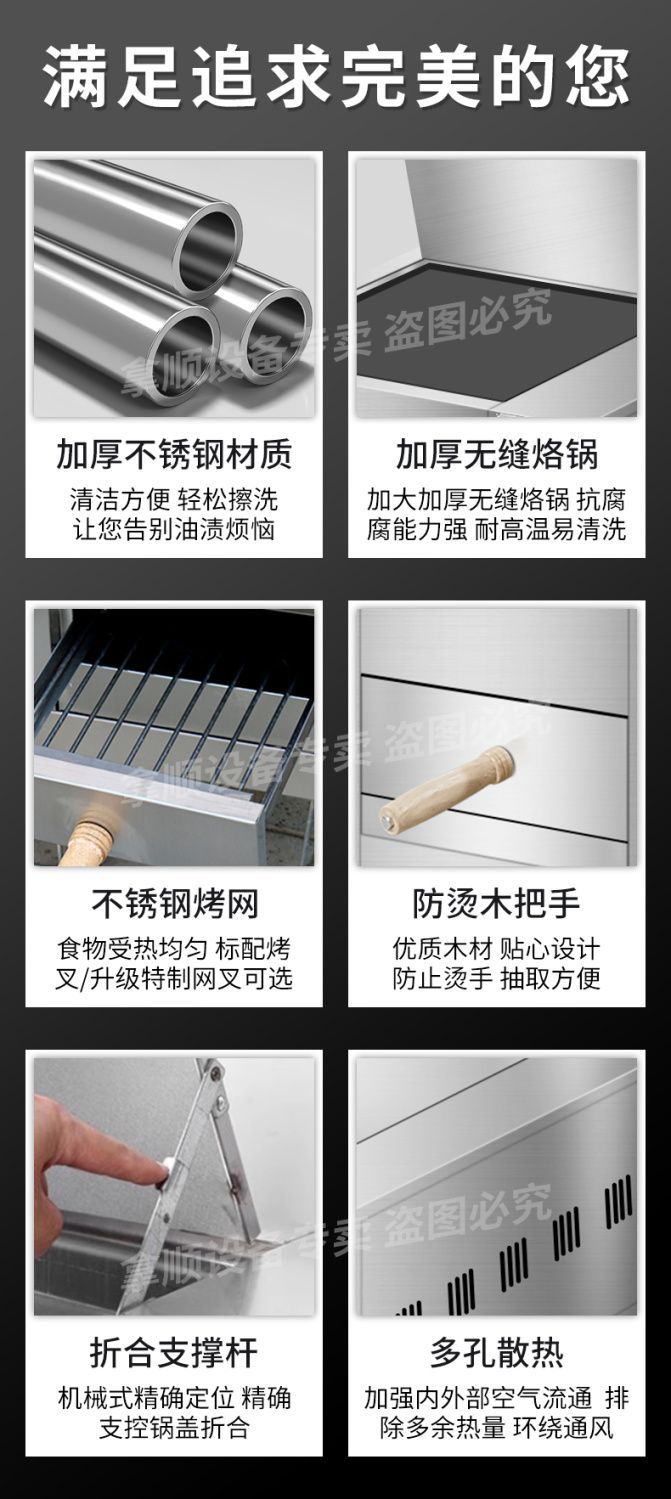 | Especificaciones de la parrilla / plato | Calidad estándar nacional - ahorro de energía y gas - engrosamiento de toda la máquina |