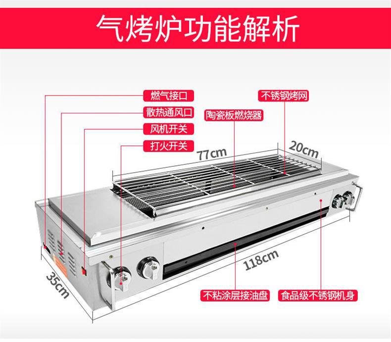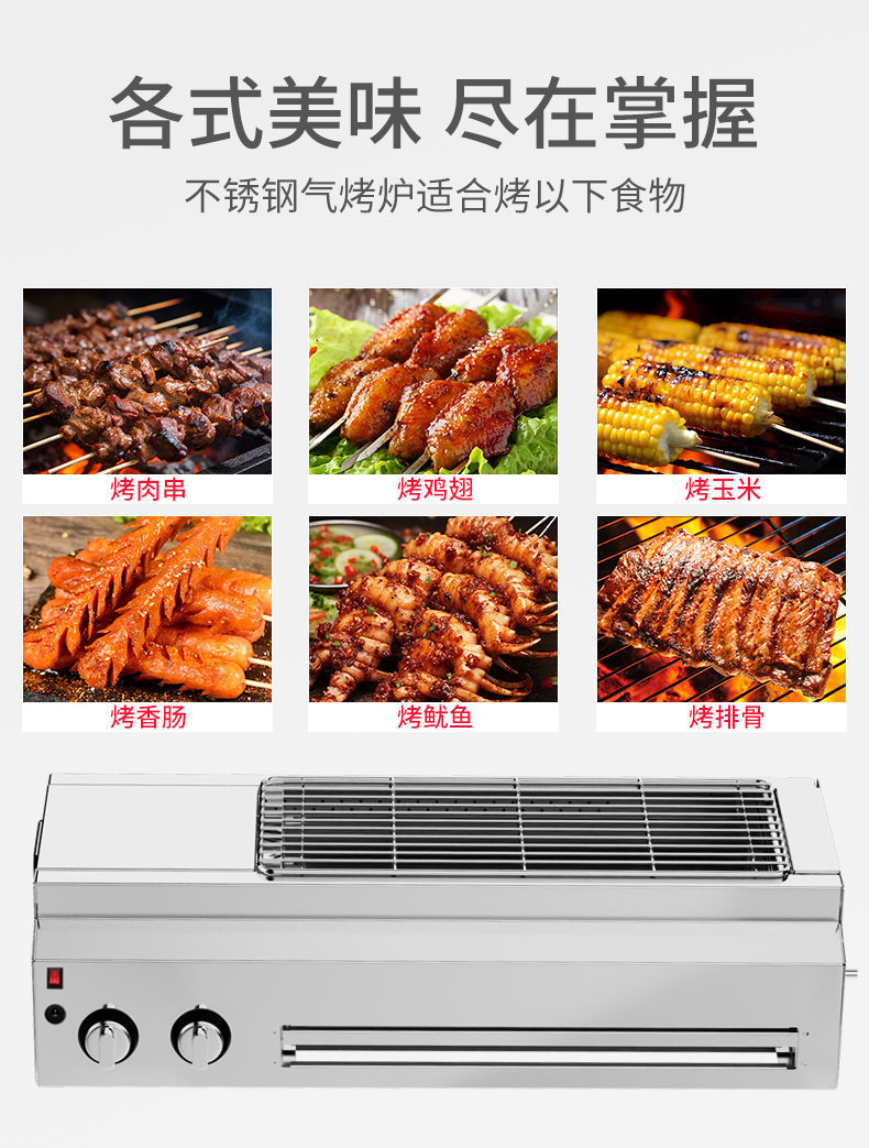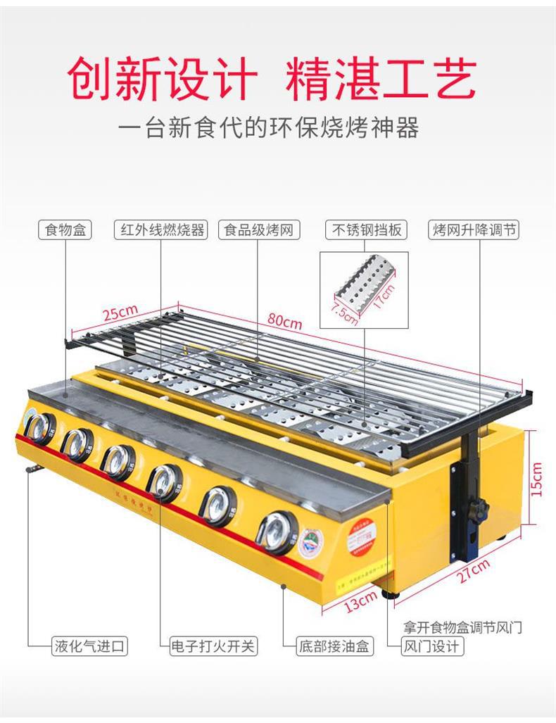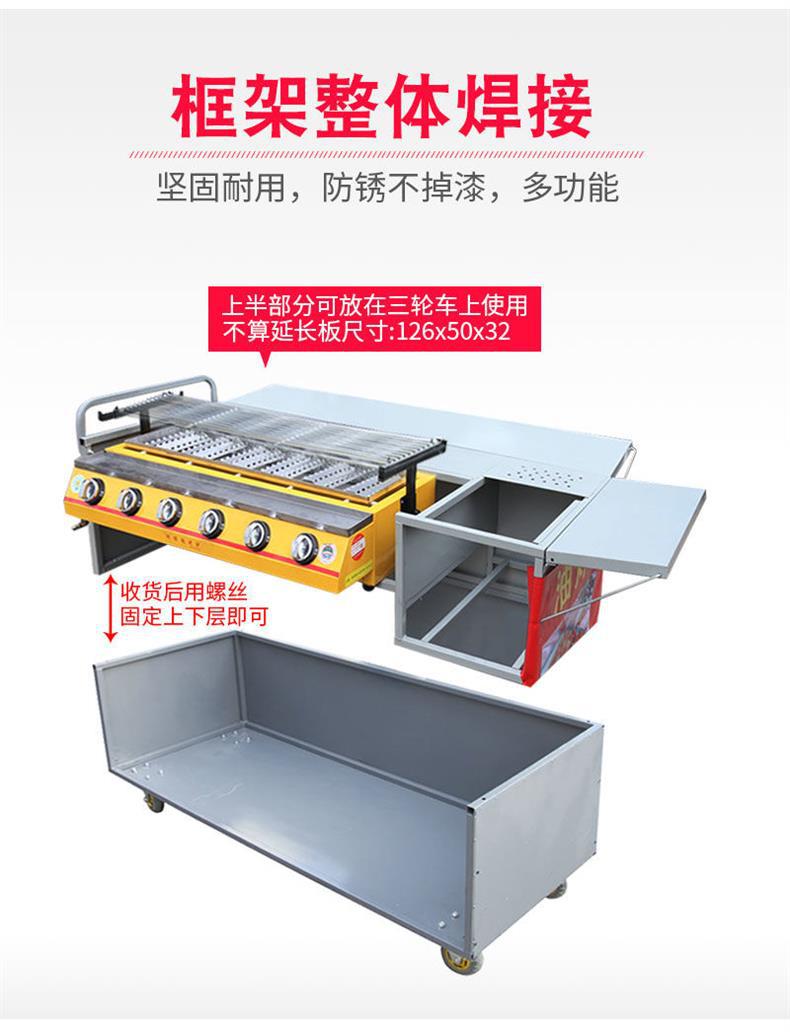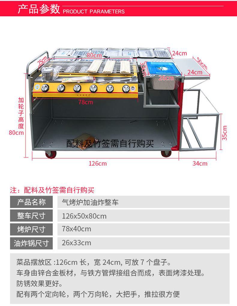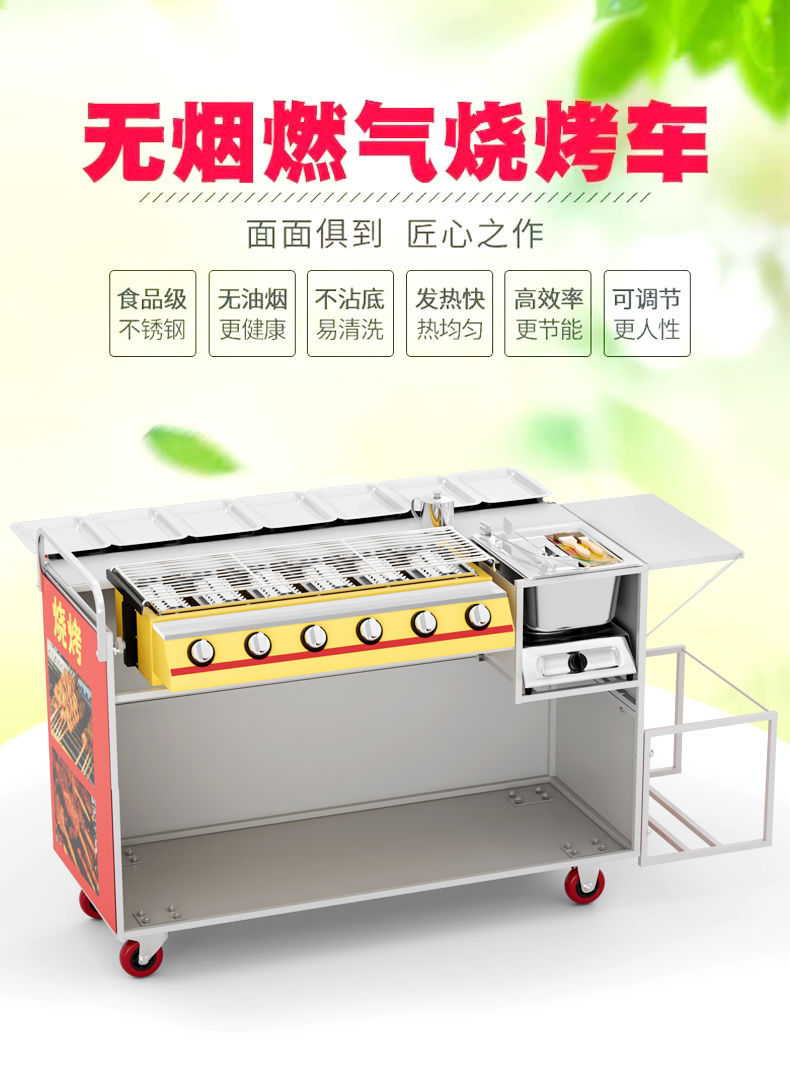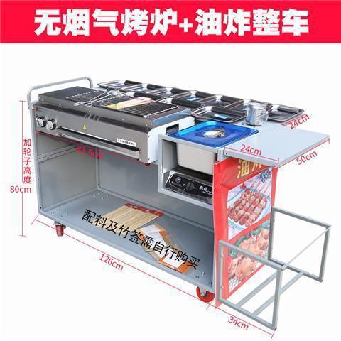 Parrilla de gas, carro de parrilla, carro de parrilla sin humo con freidora, barraca de aperitivos de ostras