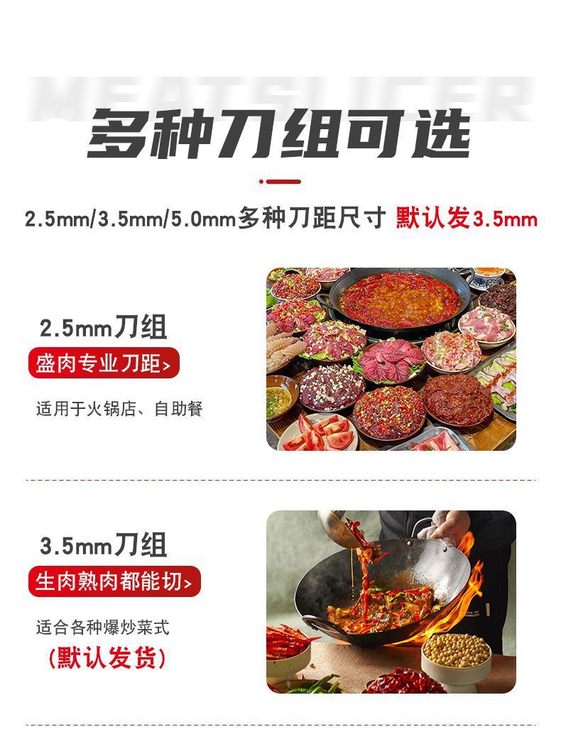 | Especificaciones | Grupo de cuchillo desmontable 95 + espesor de corte de carne 3,5 mm (recomendado), Grupo de cuchillo desmontable 95 + espesor de corte de carne 2,5 mm, Grupo de cuchillo desmontable 95 + espesor de corte de carne 5 mm, 105 escritorio + motor de cobre 2200 + espesor de corte 3,5 mm, 105 escritorio + motor de cobre 2200 + espesor de corte 5 mm, 105 escritorio + motor de cobre 2200 + espesor de corte 2,5 mm, 105 escritorio + motor de cobre 2200 + espesor de corte 3,5 + 5 |