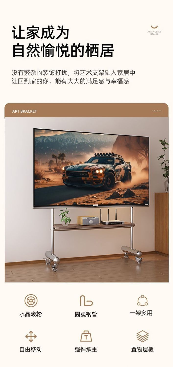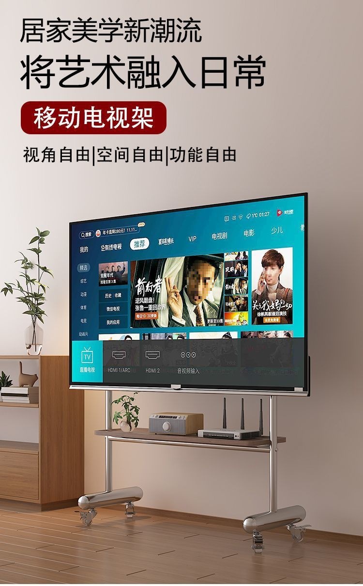 Soporte móvil de televisión de acero inoxidable móvil de piso pequeño dormitorio sala de estar doméstica 43 - 75 pulgadas rueda universal