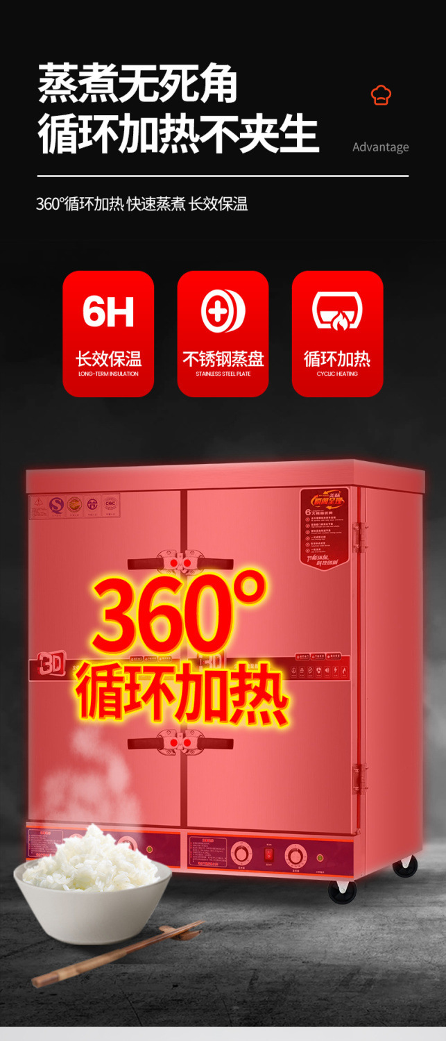 Gran gabinete de vapor de arroz comercial de doble puerta gabinete de vapor de arroz de gas 24 paneles de vapor eléctrico doble puerta gabinete de vapor de vapor coche de vapor automático