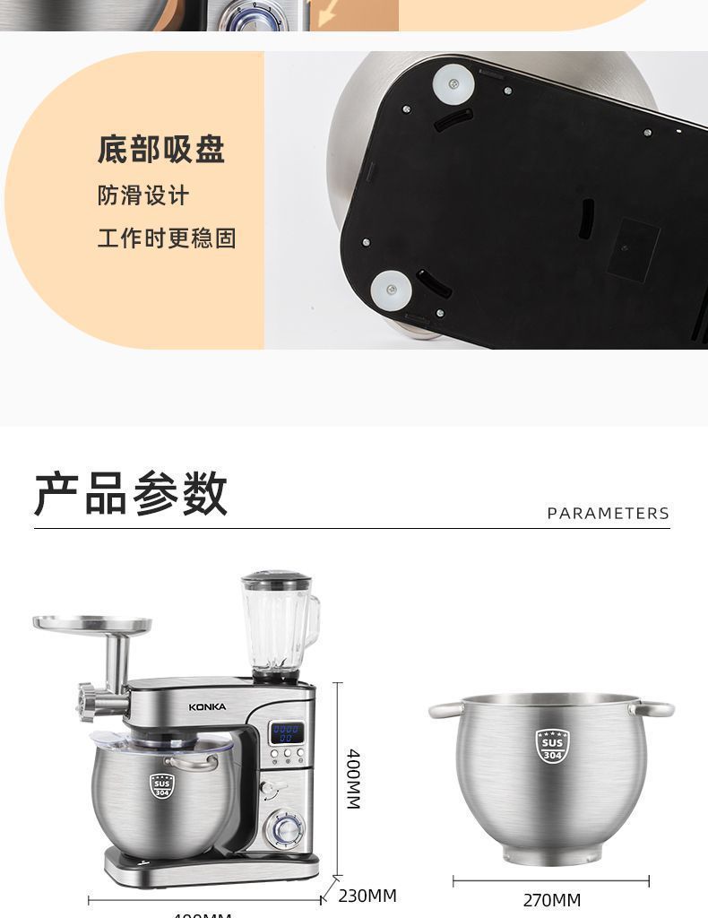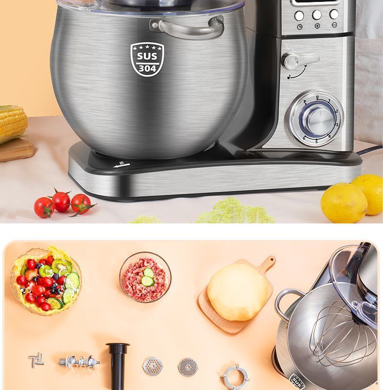 Máquina de cocinero multifuncional automática de escritorio y máquina de harina doméstica inteligente de temporización de acero inoxidable mezcladora comercial