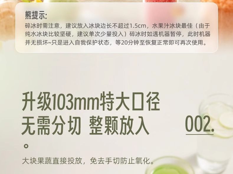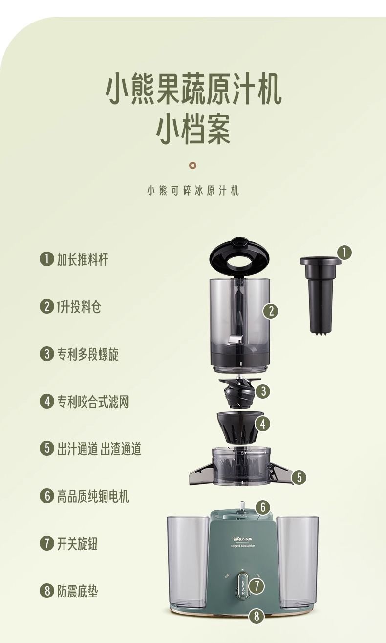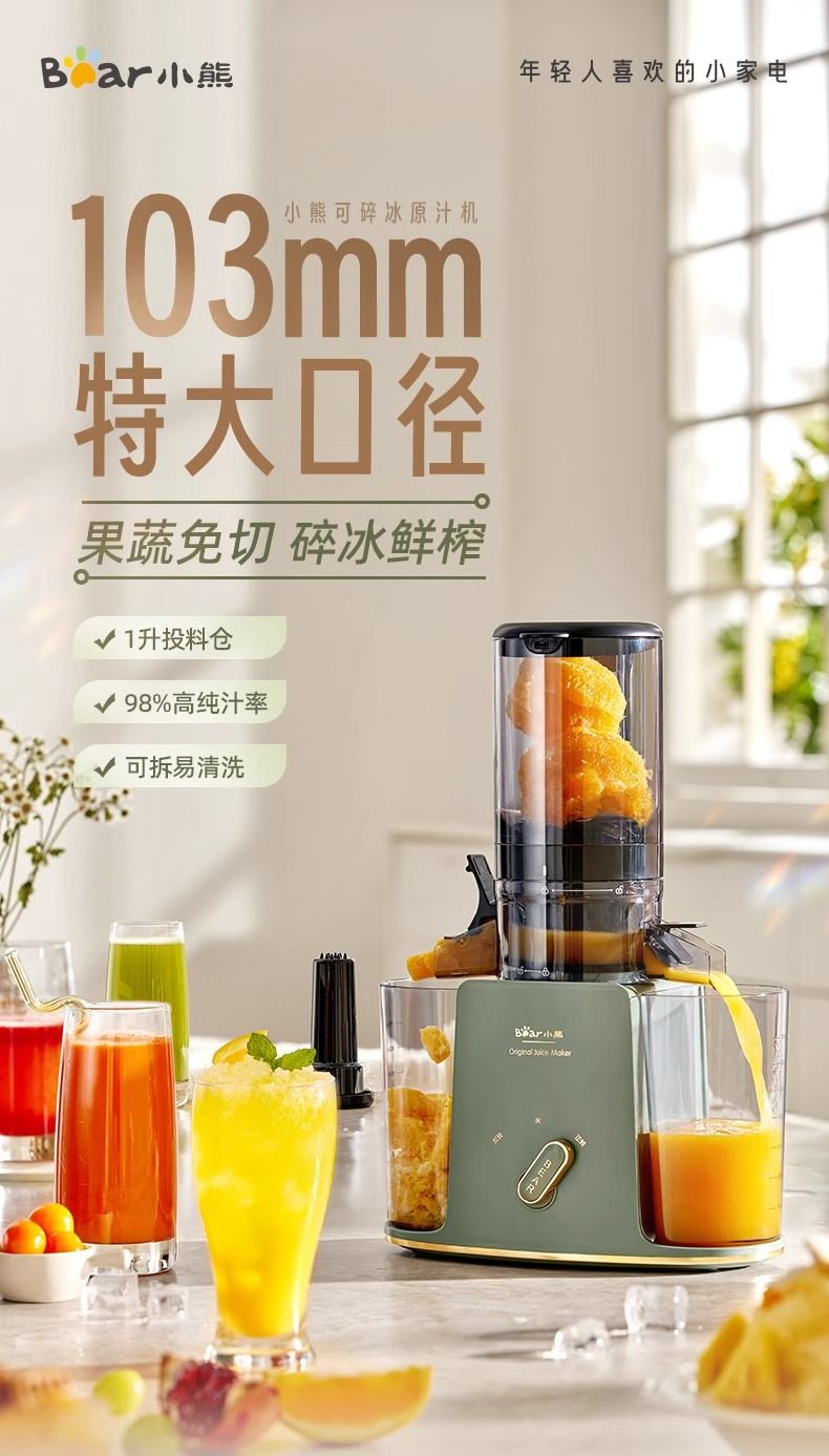 Máquina de jugo de hielo triturable de oso pequeño, máquina de jugo eléctrica para separar residuos de jugo, máquina de jugo de gran calibre automática doméstica