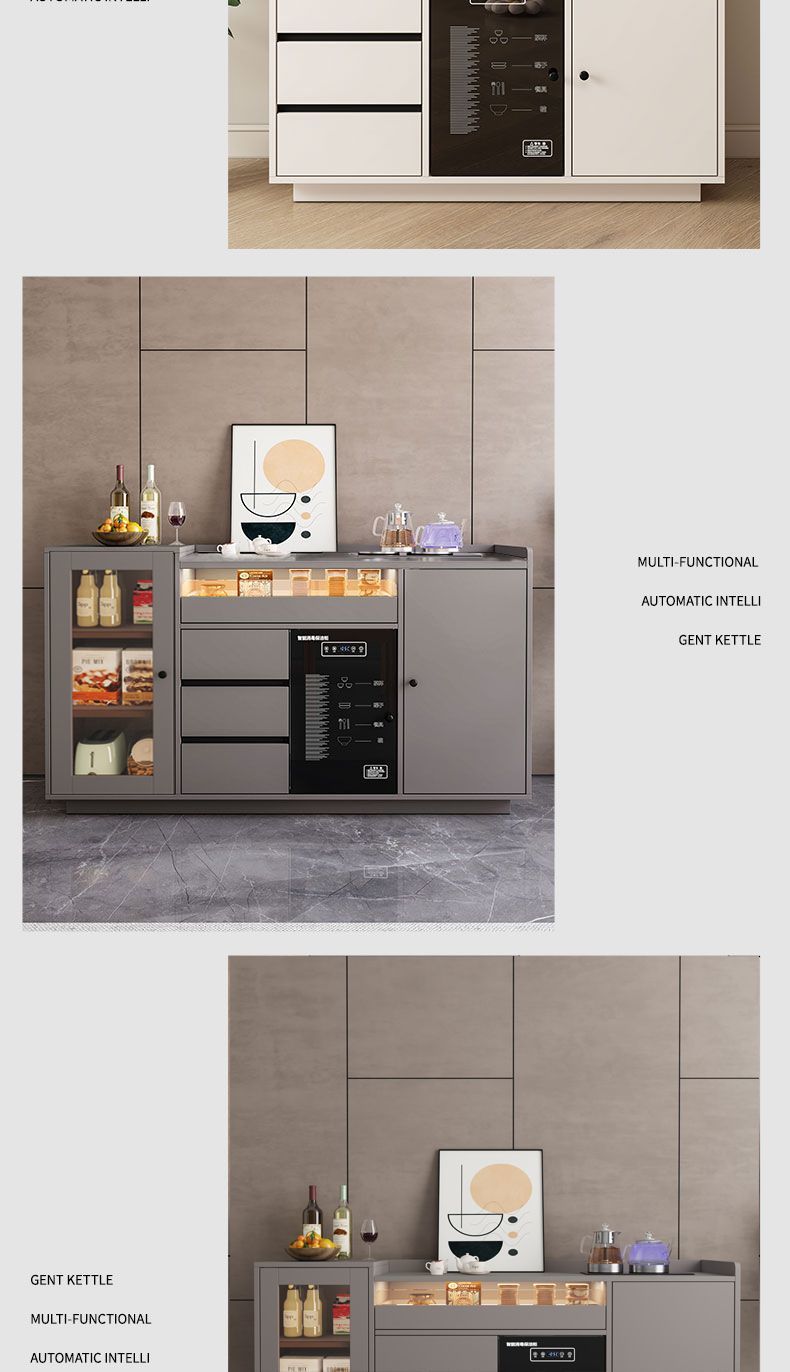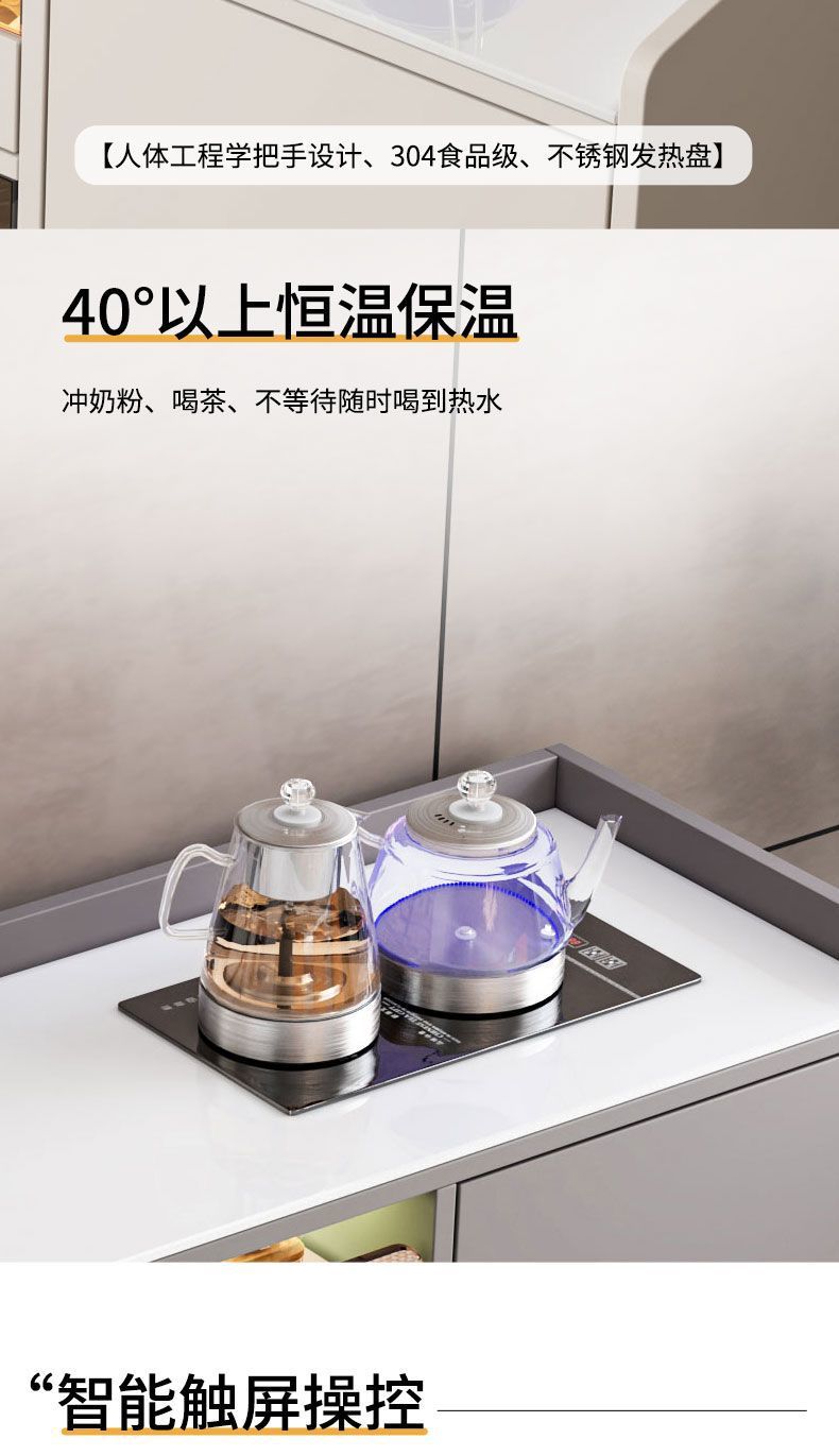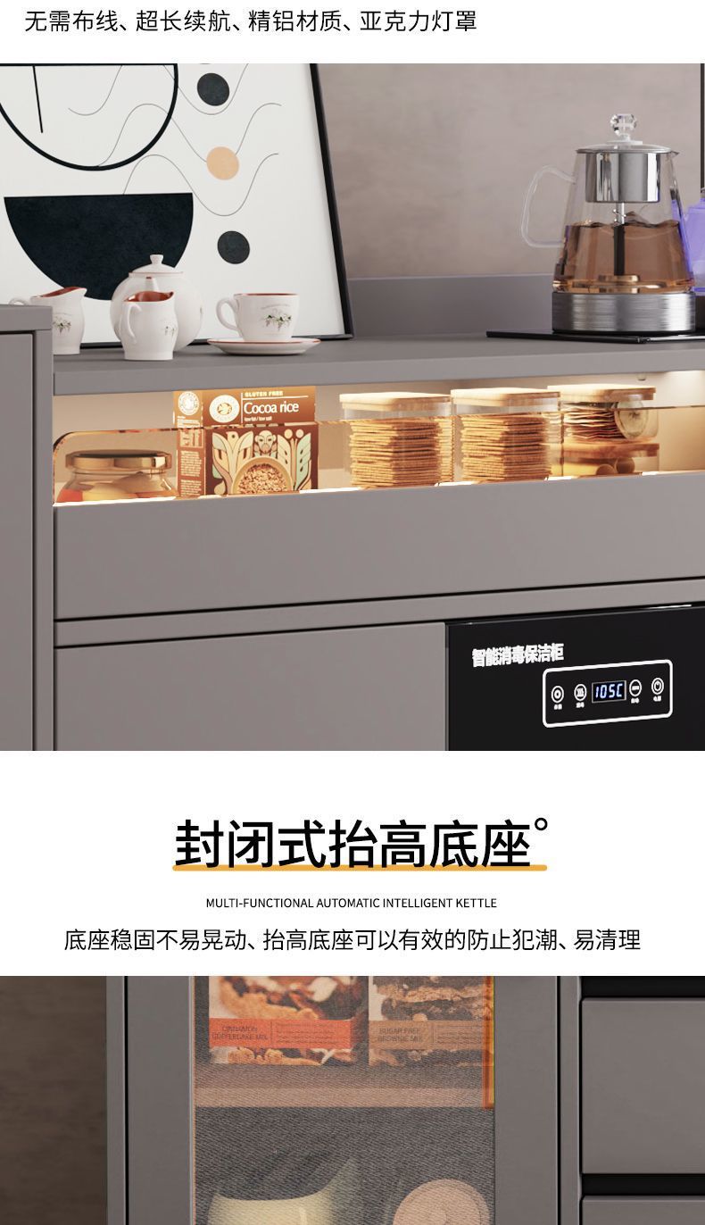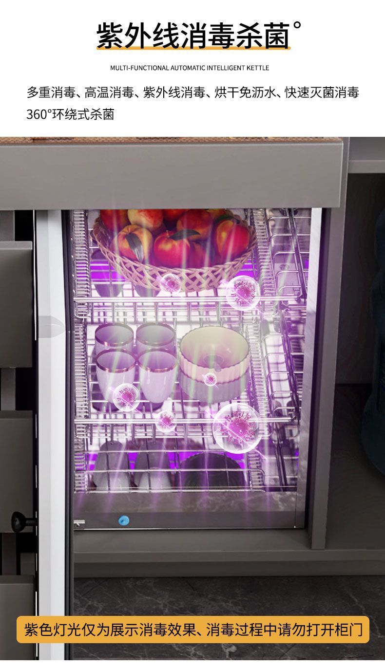 Máquina de té inteligente automática en 2025, nuevo gabinete de comidas caseras en una mesa de escritorio con desinfección