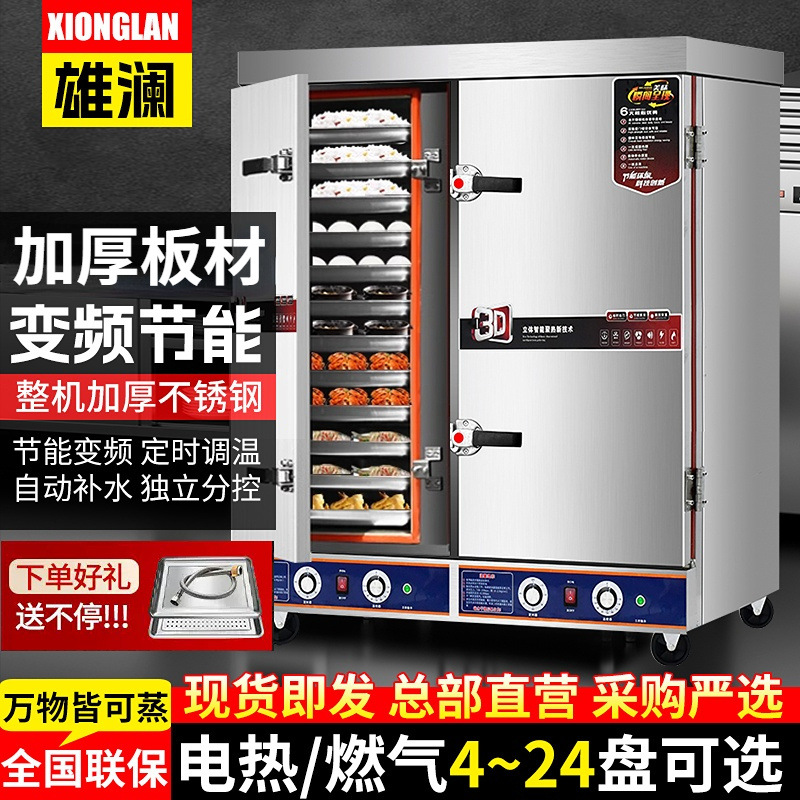 Gran arroz al vapor comercial de doble puerta vapor eléctrico de gas hotel comedor 24 placas vapor de doble puerta completamente automático vapor de gabinete