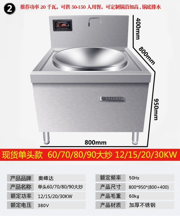 | Especificaciones | (800x900 dimensiones) 60 ollas electromagnéticas 15 kilovatios - electricidad de tres fases (380v tensión), (900x1000 dimensiones) 70 ollas electromagnéticas 15 kilovatios - electricidad de tres fases (380v tensión), (1000 * 1100 dimensiones) 80 ollas electromagnéticas 20 kilovatios - electricidad de tres fases (380v tensión), (1100x200 dimensiones) 90 ollas electromagnéticas 25 kilovatios - electricidad de tres fases (380v tensión), (1200x300 dimensiones) 1 metro ollas electromagnéticas 30 kilovatios - electricidad de tres fases (380v tensión), 1400 * 1450 dimensiones 1 metro 2 electromagnetismo 30 kilovatios - electricidad de tres fases (380v tensión) |