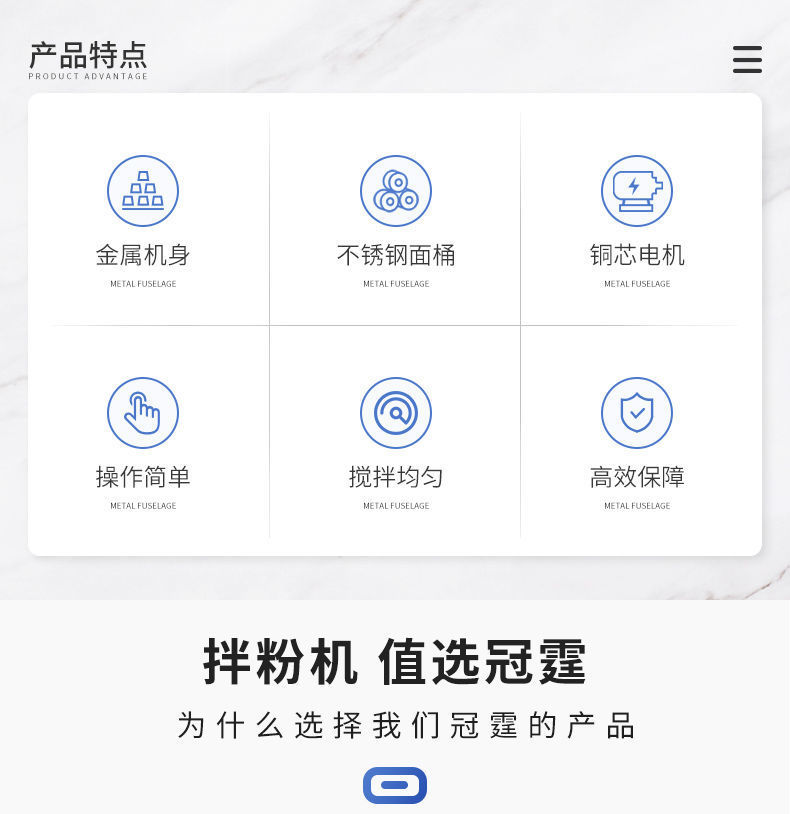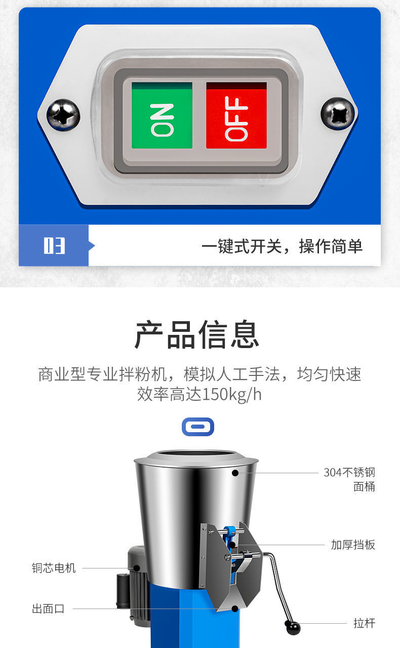 | Especificaciones | Máquina de mezcla de polvo de 15 kg (2200w), fuselaje de acero inoxidable completo de 20 kg (3000w), máquina de mezcla de polvo de 25 kg (3800w), máquina de mezcla de acero inoxidable completo de 30 kg (4200w) |