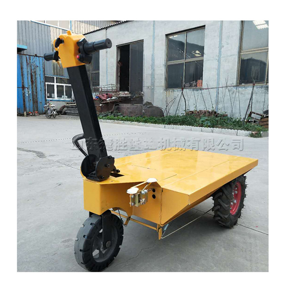 360 grados de rotación manual empujando carro plano eléctrico de tres ruedas de transporte de ladrillos de tracción pequeña herramienta de transporte de carga y descarga