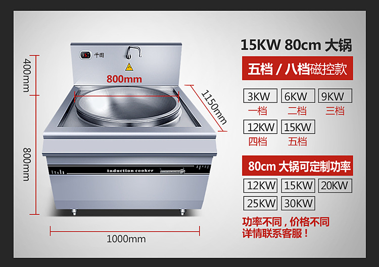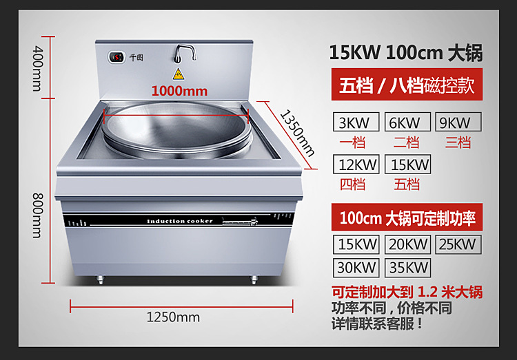 | Especificaciones | Olla grande de conducción magnética de 10kw60cm 380v, olla grande de conducción magnética de 12kw60cm 380v, olla grande de conducción magnética de 15kw60cm 380v, olla grande de conducción magnética de 15kw80cm 380v, olla grande de conducción magnética de 20kw80cm 380v, olla grande de conducción magnética de 25kw1 metros 380v, olla grande de conducción magnética de 30kw1 metros 380v |