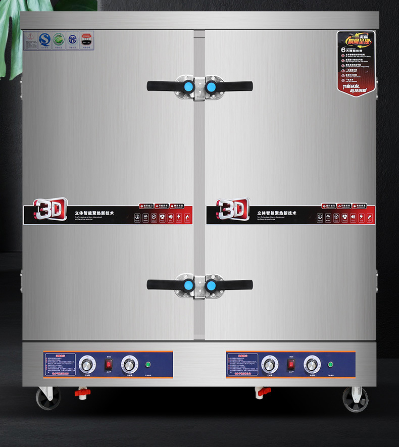Cabina de arroz al vapor de doble puerta, carro de arroz al vapor de 24 placas, gabinete de arroz al vapor comercial de doble puerta, máquina de arroz al vapor de gas