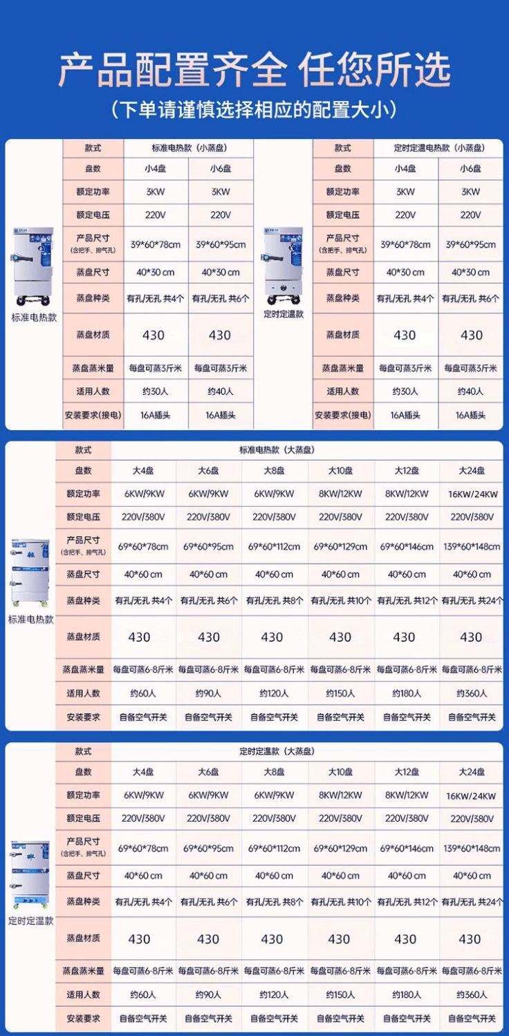 | Especificaciones | 大4盘商用加厚工程全不锈钢款-2025新款升级:220V标准电热款手动断电,大4盘商用加厚工程全不锈钢款-2025新款升级:220V智能定时款自动断电,大4盘商用加厚工程全不锈钢款-2025新款升级:220V定时防干烧缺水断电,大4盘商用加厚工程全不锈钢款-全新升级:豪华液化气煤气罐熄火保护款,大4盘商用加厚工程全不锈钢款-全新升级:豪华天燃气管道气熄火保护款,大4盘商用加厚工程全不锈钢款-全新升级:电气两用可用电/可用气/随意切换,大6盘商用加厚工程全不锈钢款-2025新款升级:220V标准电热款手动断电,大6盘商用加厚工程全不锈钢款-2025新款升级:220V智能定时款自动断电,大6盘商用加厚工程全不锈钢款-2025新款升级:220V定时防干烧缺水断电,大6盘商用加厚工程全不锈钢款-全新升级:豪华液化气煤气罐熄火保护款,大6盘商用加厚工程全不锈钢款-全新升级:豪华天燃气管道气熄火保护款,大6盘商用加厚工程全不锈钢款-全新升级:电气两用可用电/可用气/随意切换,大6盘商用加厚工程全不锈钢款-2025新款升级:380V标准电热款手动断电,大6盘商用加厚工程全不锈钢款-2025新款升级:380V智能定时款自动断电,大6盘商用加厚工程全不锈钢款-2025新款升级:380V定时防干烧缺水断电,大8盘商用加厚工程全不锈钢款-2025新款升级:220V标准电热款手动断电,大8盘商用加厚工程全不锈钢款-2025新款升级:220V智能定时款自动断电,大8盘商用加厚工程全不锈钢款-2025新款升级:220V定时防干烧缺水断电,大8盘商用加厚工程全不锈钢款-全新升级:豪华液化气煤气罐熄火保护款,大8盘商用加厚工程全不锈钢款-全新升级:豪华天燃气管道气熄火保护款,大8盘商用加厚工程全不锈钢款-全新升级:电气两用可用电/可用气/随意切换,大8盘商用加厚工程全不锈钢款-2025新款升级:380V标准电热款手动断电,大8盘商用加厚工程全不锈钢款-2025新款升级:380V智能定时款自动断电,大8盘商用加厚工程全不锈钢款-2025新款升级:380V定时防干烧缺水断电,大10盘商用加厚工程全不锈钢款-2025新款升级:220V标准电热款手动断电,大10盘商用加厚工程全不锈钢款-2025新款升级:220V智能定时款自动断电,大10盘商用加厚工程全不锈钢款-2025新款升级:220V定时防干烧缺水断电,大10盘商用加厚工程全不锈钢款-全新升级:豪华液化气煤气罐熄火保护款,大10盘商用加厚工程全不锈钢款-全新升级:豪华天燃气管道气熄火保护款,大10盘商用加厚工程全不锈钢款-全新升级:电气两用可用电/可用气/随意切换,大10盘商用加厚工程全不锈钢款-2025新款升级:380V标准电热款手动断电,大10盘商用加厚工程全不锈钢款-2025新款升级:380V智能定时款自动断电,大10盘商用加厚工程全不锈钢款-2025新款升级:380V定时防干烧缺水断电,大12盘商用加厚工程全不锈钢款-2025新款升级:220V标准电热款手动断电,大12盘商用加厚工程全不锈钢款-2025新款升级:220V智能定时款自动断电,大12盘商用加厚工程全不锈钢款-2025新款升级:220V定时防干烧缺水断电,大12盘商用加厚工程全不锈钢款-全新升级:豪华液化气煤气罐熄火保护款,大12盘商用加厚工程全不锈钢款-全新升级:豪华天燃气管道气熄火保护款,大12盘商用加厚工程全不锈钢款-全新升级:电气两用可用电/可用气/随意切换,大12盘商用加厚工程全不锈钢款-2025新款升级:380V标准电热款手动断电,大12盘商用加厚工程全不锈钢款-2025新款升级:380V智能定时款自动断电,大12盘商用加厚工程全不锈钢款-2025新款升级:380V定时防干烧缺水断电,大4盘商用加厚工程全不锈钢款-2025新款升级:380V标准电热款手动断电,大4盘商用加厚工程全不锈钢款-2025新款升级:380V智能定时款自动断电,大4盘商用加厚工程全不锈钢款-2025新款升级:380V定时防干烧缺水断电 |