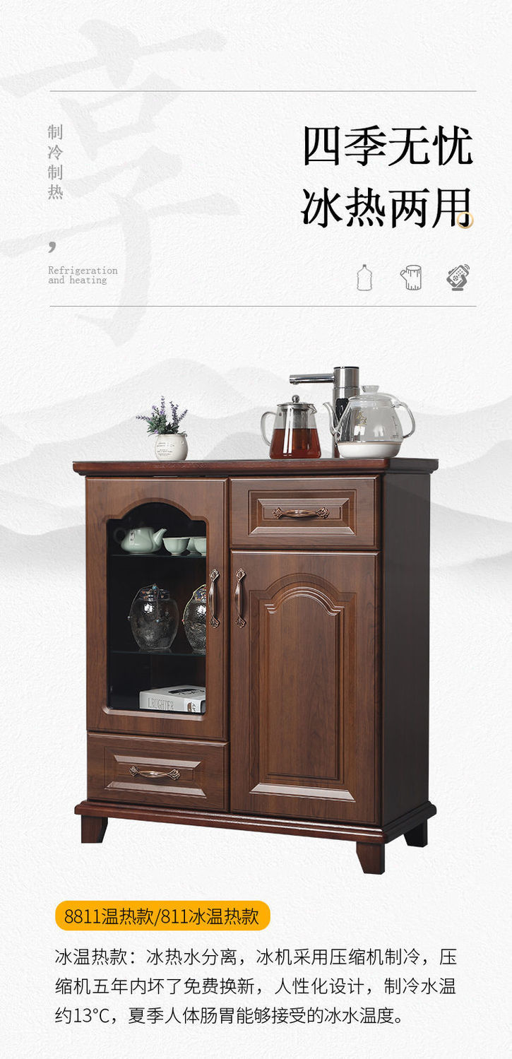 Máquina de té inteligente de madera maciza totalmente automática de suministro de agua tipo cubo de agua vertical tipo baja máquina de beber de agua caliente y fría doméstica