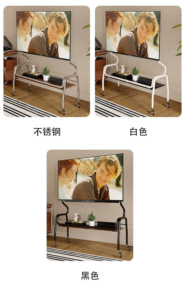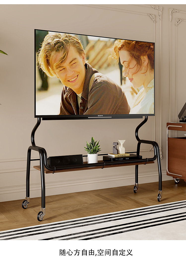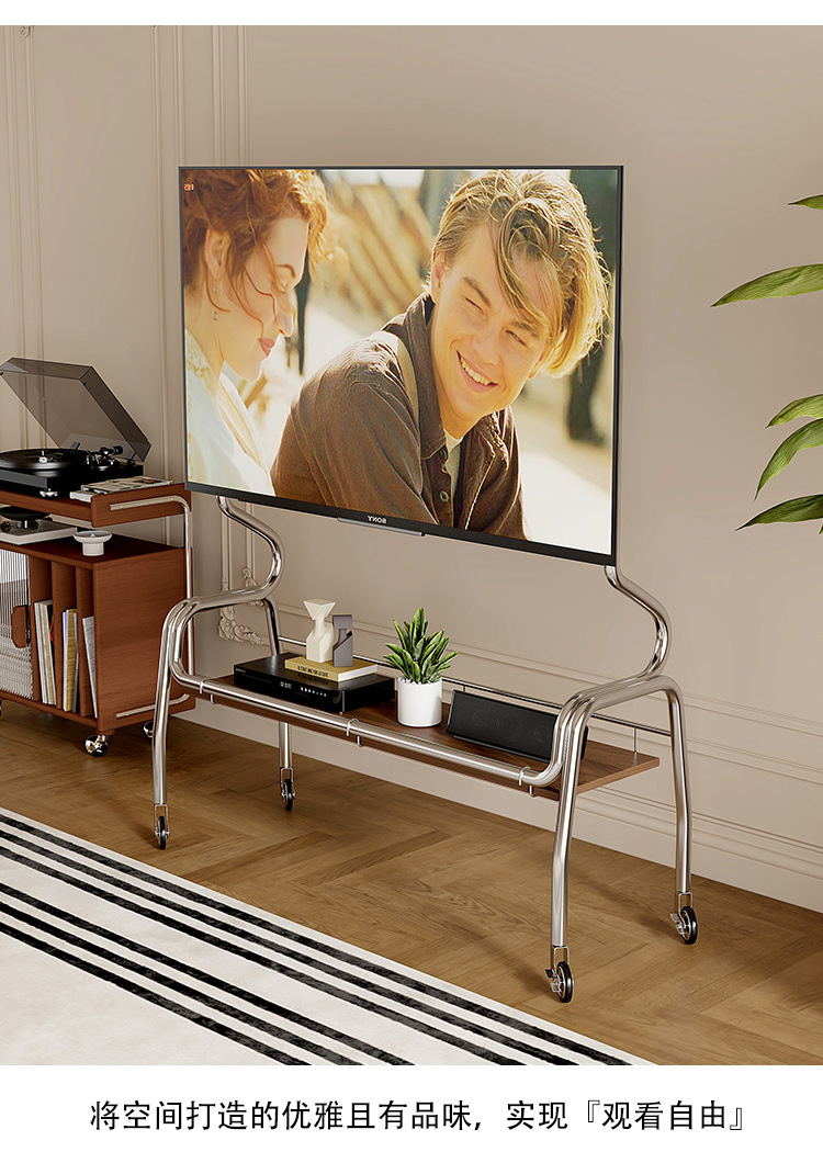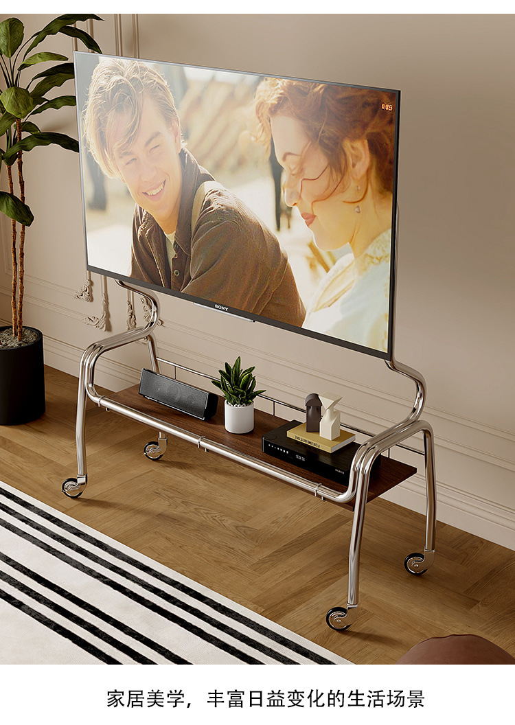 Soporte de piso de televisión de acero inoxidable móvil vertical con ruedas carro doméstico dormitorio sala de estar 40 - 85 pulgadas colgante
