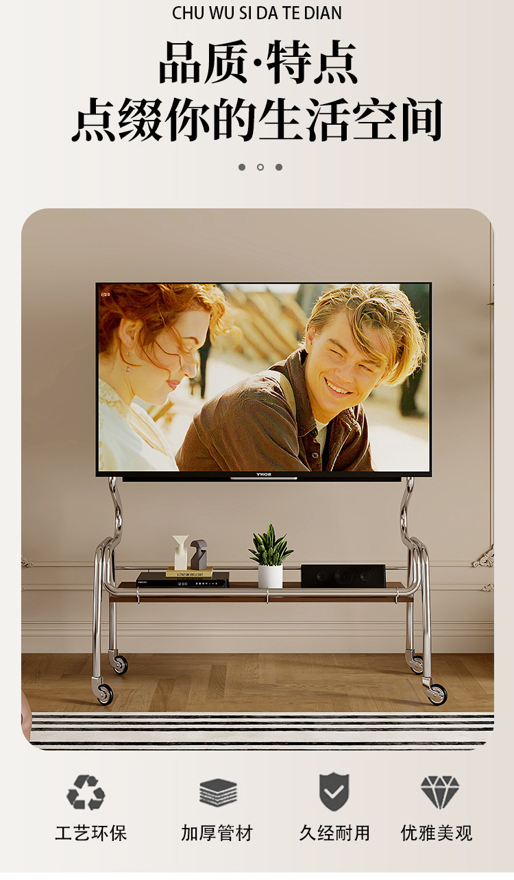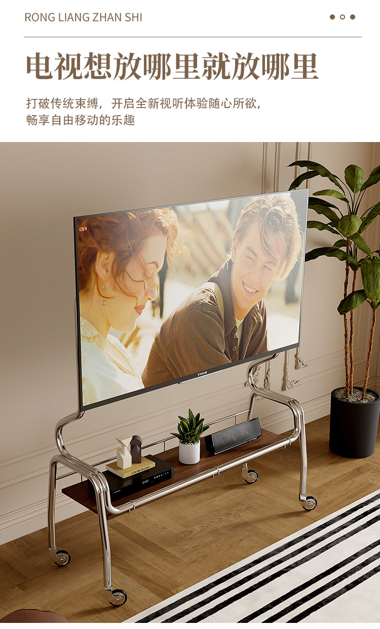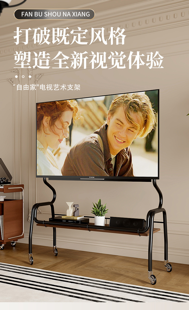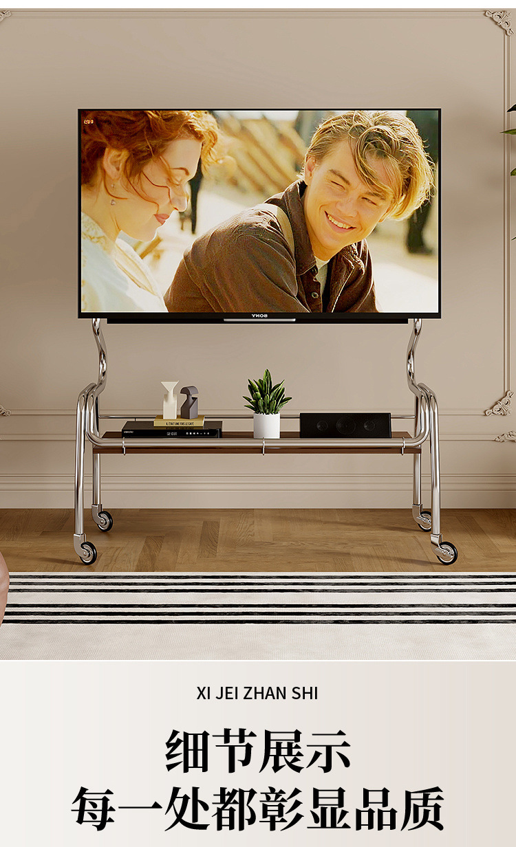Soporte de piso de televisión de acero inoxidable móvil vertical con ruedas carro doméstico dormitorio sala de estar 40 - 85 pulgadas colgante