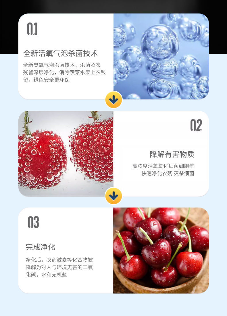Máquina de limpieza de frutas y verduras, máquina de limpieza de verduras, artefacto inteligente doméstico, desinfección automática de burbujas de ozono, purificador de frutas, esterilización