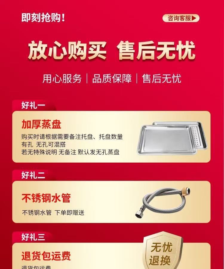 | Especificaciones | Calentamiento eléctrico estándar 220V - 24 placas comerciales (placa gruesa - durabilidad de 15 años), modelo de temporización inteligente de 220V - 24 placas comerciales (placa gruesa - durabilidad de 15 años), 220V temporización inteligente - anti-seco - 24 placas comerciales (placa gruesa - 15 años de duración), 380V estándar de calentamiento eléctrico - 24 placas comerciales (placa gruesa - durabilidad 15 años), 380V temporización inteligente - 24 placas comerciales (placa gruesa - 15 años de duración), 380V temporización inteligente - anti-seco - 24 placas comerciales (placa gruesa - dura 15 años), gas de lujo - gas licuado - con protección contra el fuego - modelo de ahorro de energía - 24 placas comerciales (placa gruesa - dura 15 años), gas de lujo - gas de tubería - con protección contra el fuego - modelo de ahorro de energía - 24 placas comerciales (placa gruesa - dura 15 años), modelo eléctrico de doble uso - gas + electricidad - conmutable - 24 placas comerciales (placa gruesa - dura 15 años) |