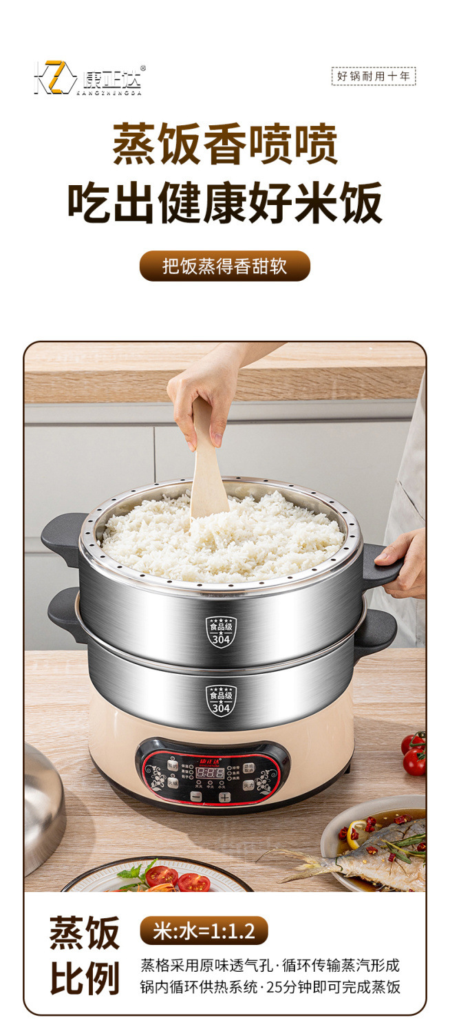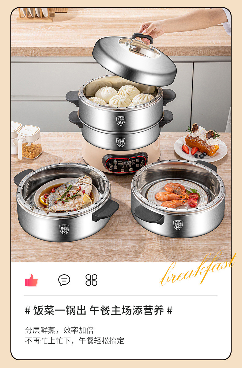 304 horno de vapor eléctrico sin agujeros de reserva horno de arroz eléctrico multifuncional doméstico vapor inteligente de vapor eléctrico de tres capas
