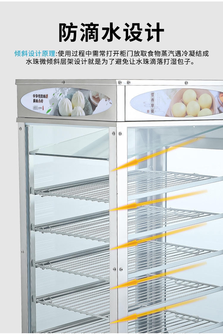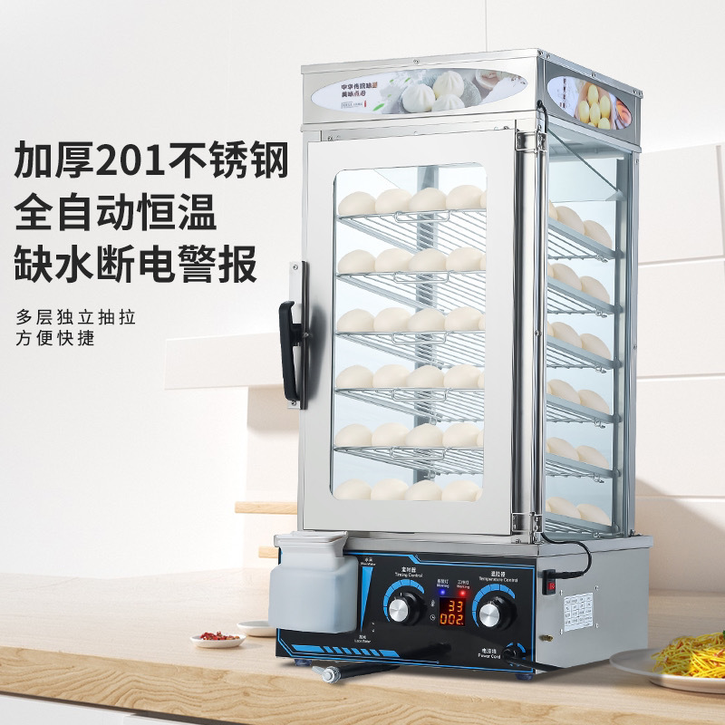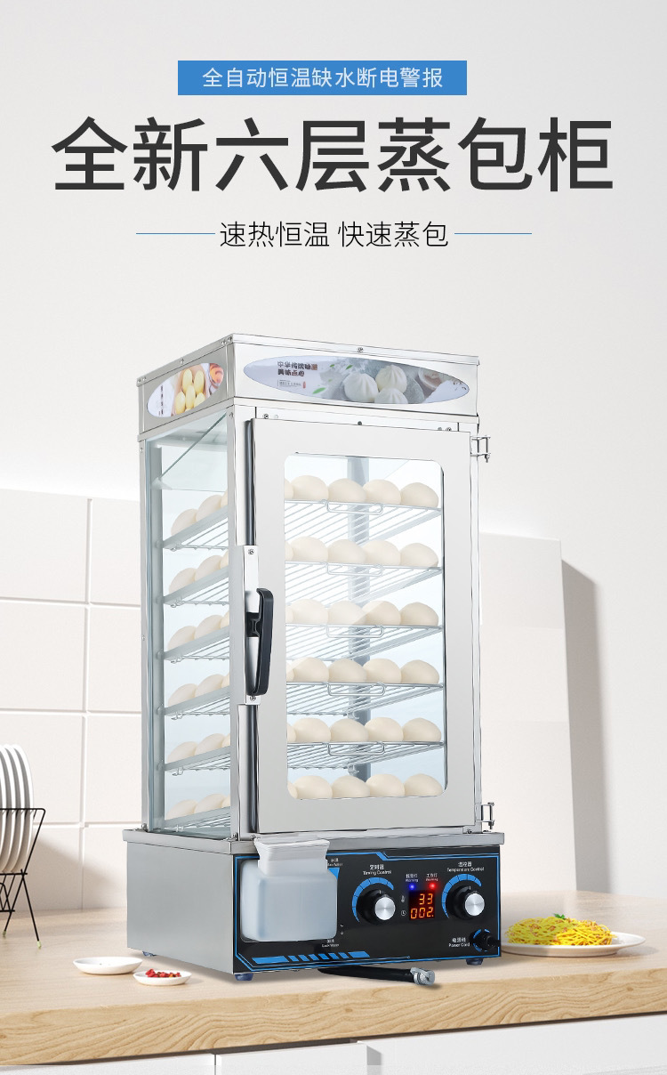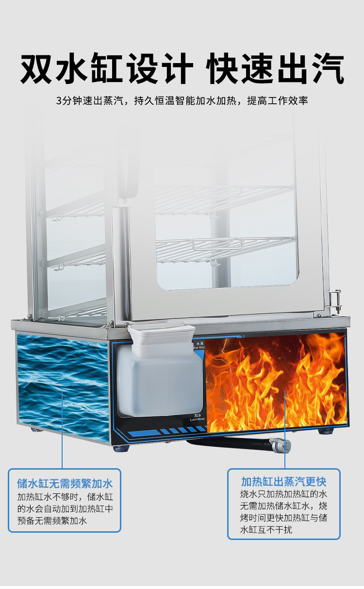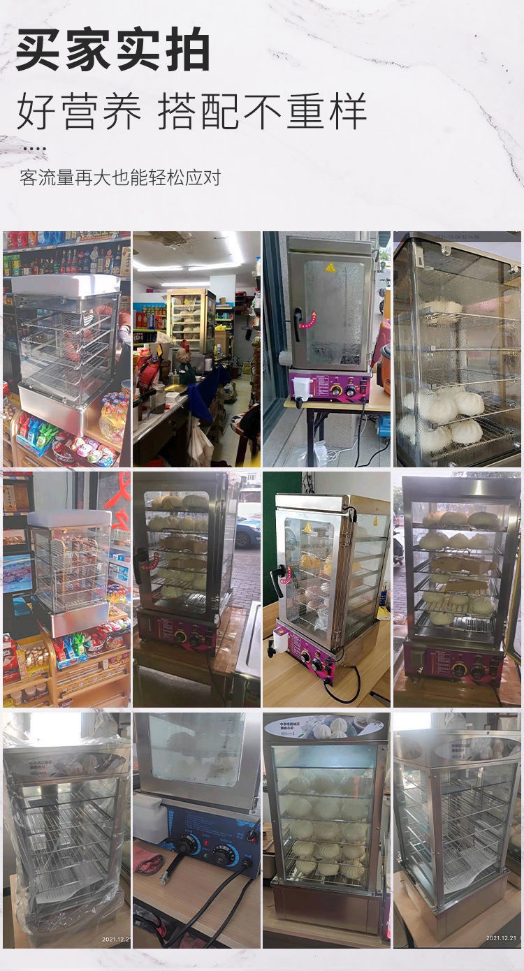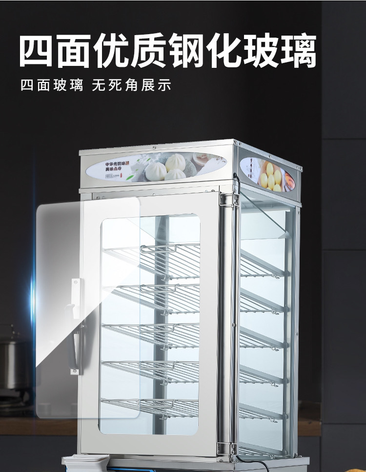 Máquina de vapor de paquete tipo gabinete comercial pequeño vapor de vidrio de doble uso para bocadillos de vapor de paquete caliente gabinete de aislamiento térmico