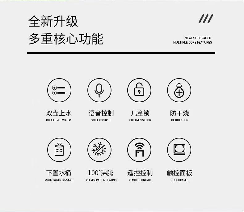| Especificaciones | Gris + control remoto + agua inferior + té hervido + toque + libre de instalación - caliente + agua hervida + agua ambiente, gris + control remoto + agua inferior + té hervido + toque + libre de instalación - hielo caliente + agua hervida + agua helada + agua ambiente, gris + voz + agua inferior + té hervido + toque + libre de instalación - caliente + agua hervida + agua ambiente, gris + voz + agua inferior + té hervido + toque + libre de instalación - agua caliente + agua hervida + agua ambiente, gris + voz + agua inferior + té hervido + toque + libre de instalación - hielo caliente + agua hervida + agua helada + agua ambiente |